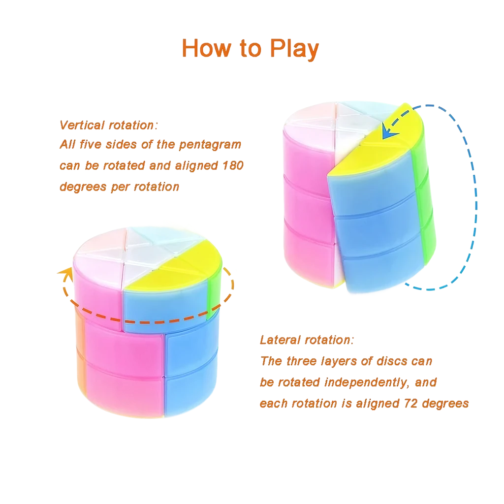 ¡Juega y diviértete con el CUBO CILINDRO STAR - PASTEL! Su forma de cilindro y colores pasteles con estrella te garantizan un buen giro y una experiencia divertida. ¡No te pierdas la oportunidad de tener este cubo en tus manos!