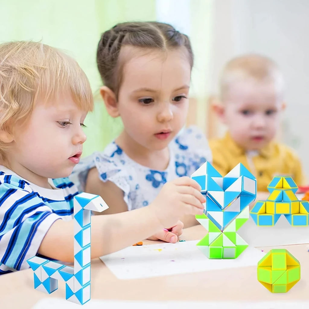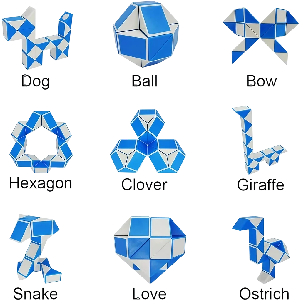 ¡Transforma tu cerebro y desafía tu mente con el Cubo Serpiente! Gira el triángulo para crear una serpiente, perro, amor, o incluso un fútbol. Cada cubo mide 8.9 x 0.6 x 0.4 pulgadas, ¡perfecto para llevar a todas partes! Ideal para regalar a niños y desarrollar su imaginación y habilidades mentales. ¡Diviértete con este rompecabezas geométrico mágico de 24 piezas!