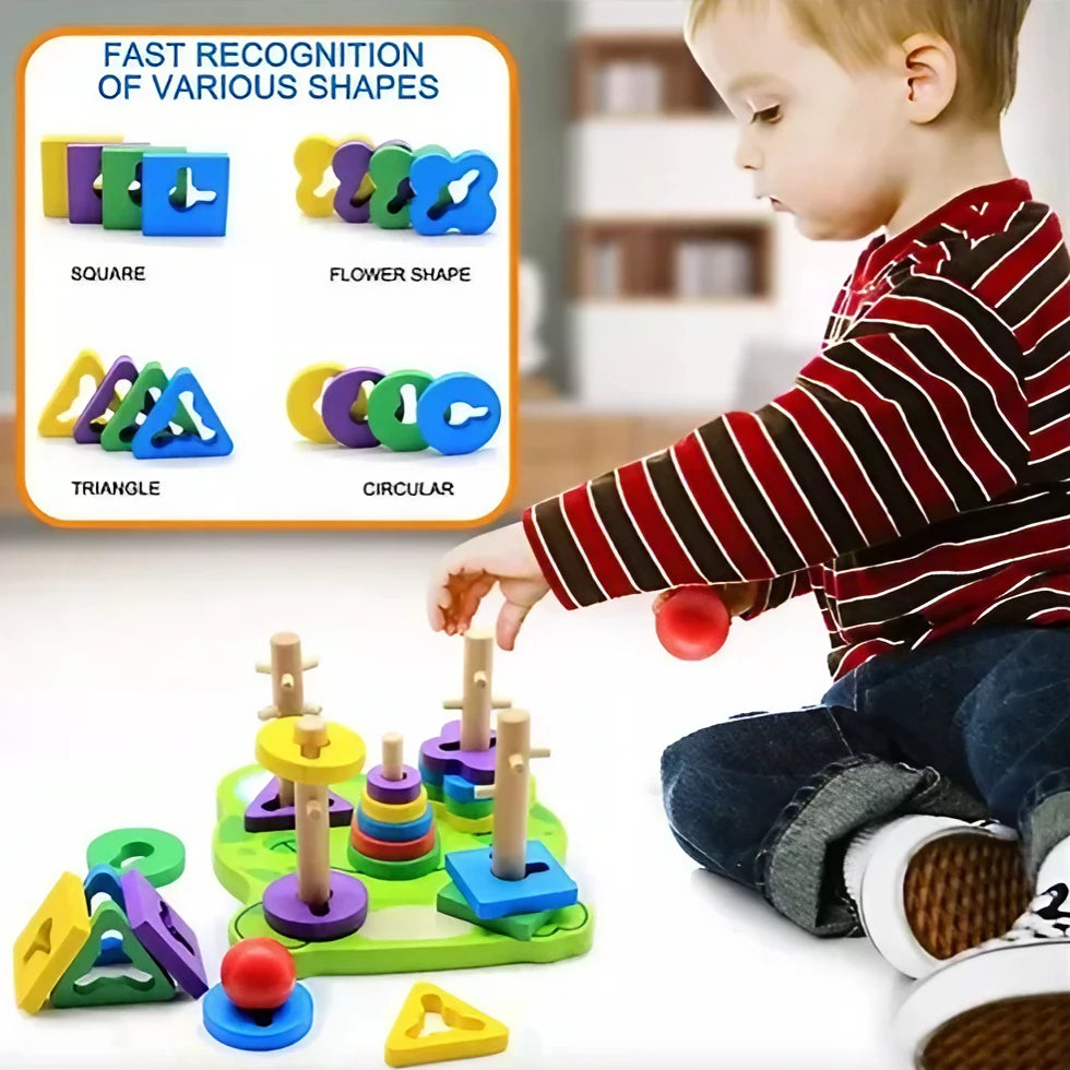 Spark your child's curiosity with the Frog Difficulty! This wooden geometric shape matching game not only stimulates fine motor skills, but also develops shape memory and teaches basic shape recognition. With different pegs and shapes, each matching is a new challenge for your little one!