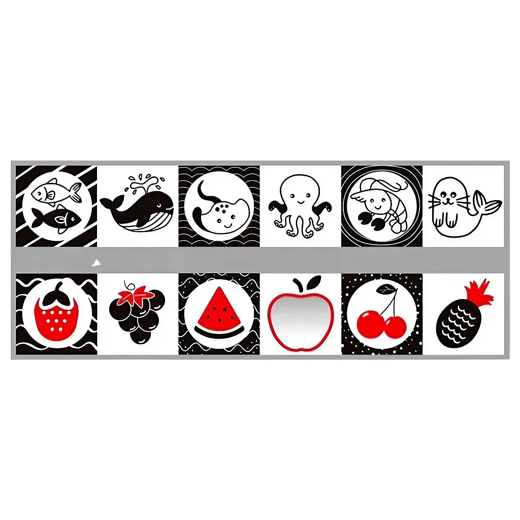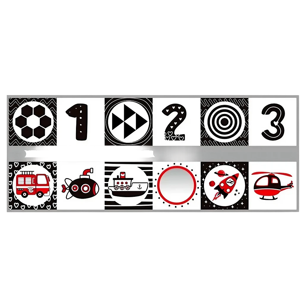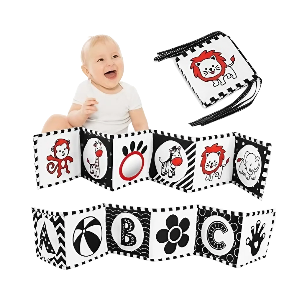 ¡Despierta la curiosidad de tu bebé con nuestro Libro Black and White! Hecho de tela suave, este libro de juguetes educativos de alto contraste en blanco y negro es el regalo perfecto para bebés de 0 a 12 meses. Incluye un espejo para estimular su visión ¡y brindar horas de diversión en la cuna o en la cama de actividades!