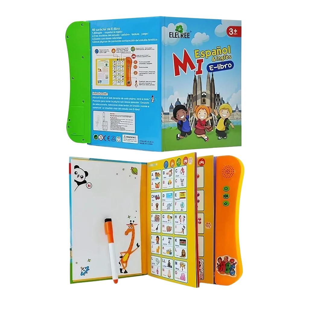 ¡Sumérgete en una experiencia de aprendizaje emocionante con nuestro Libro Electrónico Español & Inglés! Con sonidos en ambos idiomas, este libro te ofrece una pronunciación precisa del vocabulario. Con un solo botón, enciende el libro y comienza a aprender. Presiona los botones para escuchar palabras, leer páginas, ¡e incluso jugar y responder preguntas! Perfecto para niños de 3 años en adelante, ¡mide 25.30 x 22 cm y es el compañero ideal para su aprendizaje de inglés!