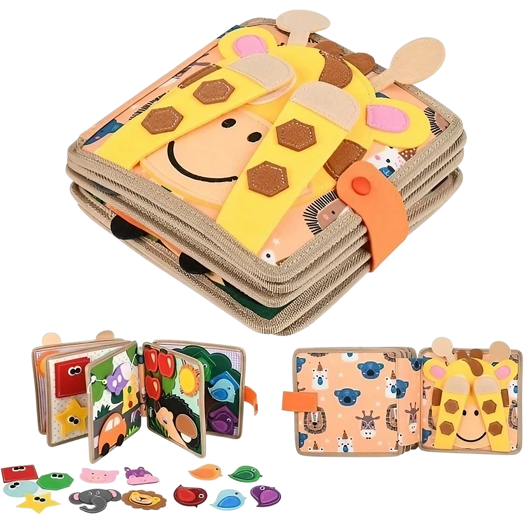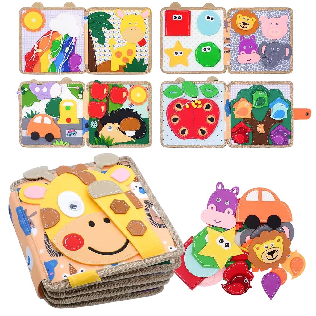 ¡Fomente el juego interactivo y las habilidades prácticas para la vida con nuestro Libro Textura Jirafa! Con tareas de la vida real, como cordones y botones, ¡mejora las habilidades motoras finas de los niños mientras juegan! Hecho de tela segura y certificado educativo, este libro inspirado en Montessori con figuras geométricas y colores. ¡Haz que el aprendizaje sea emocionante para tus pequeños con nuestro Libro Textura Granja!