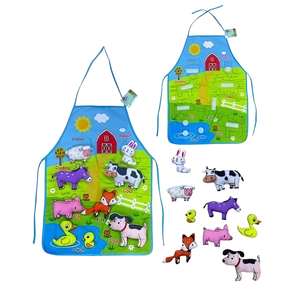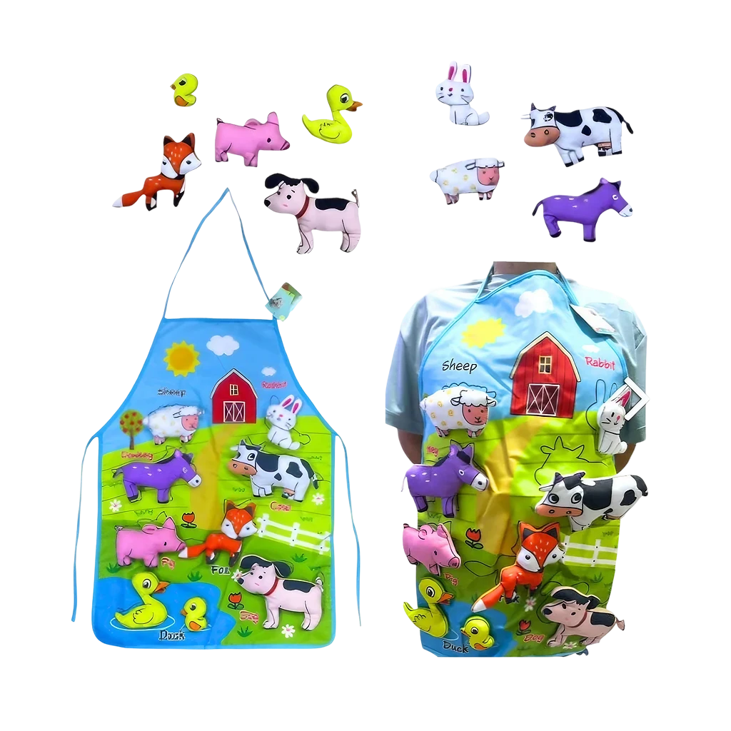 El Mandil Granja Muñecos es un divertido accesorio que incluye 9 animalitos de la granja. Con ello, los niños podrán estimular su lenguaje, escuchar sonidos fonotopédicos y mejorar su estimulación visual. Además, cuenta con llamativos colores y cada animalito tiene sonidos al presionarlos. ¡Estimulación y diversión en uno!