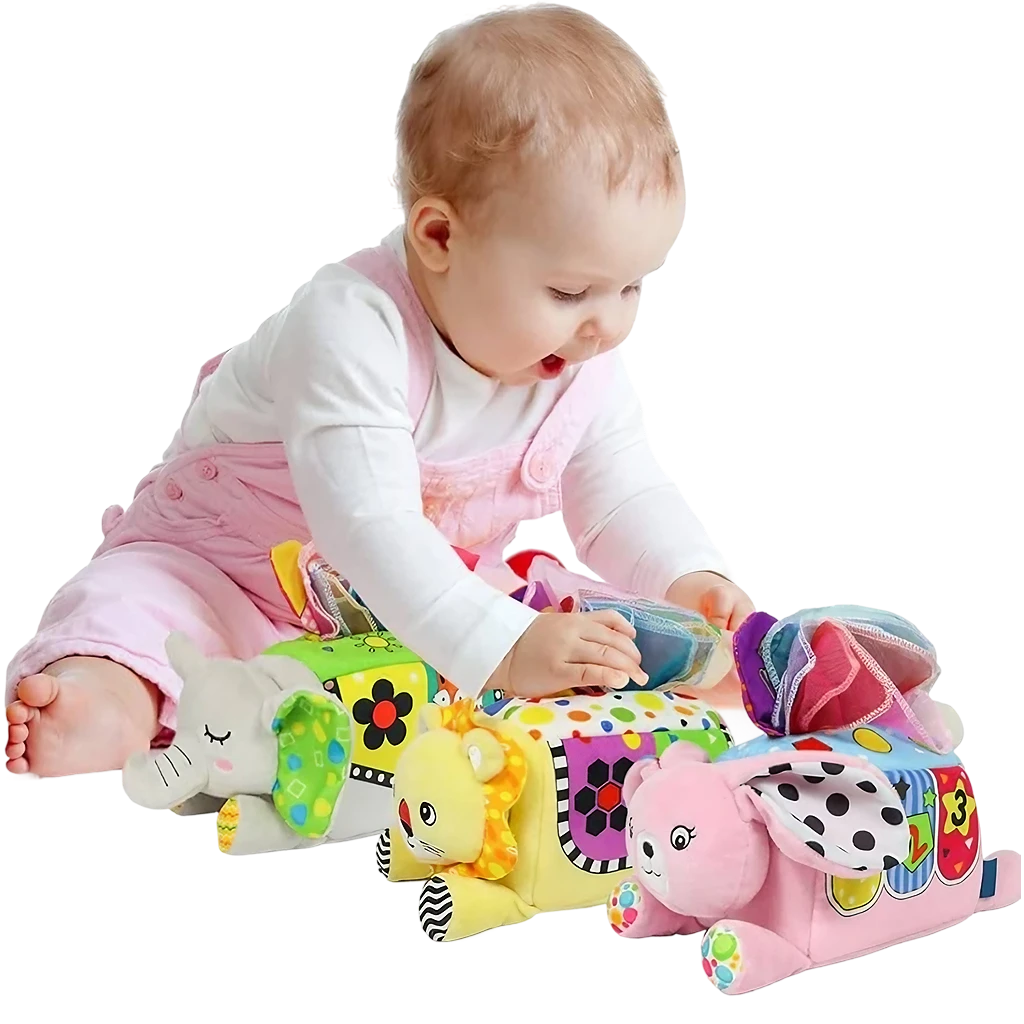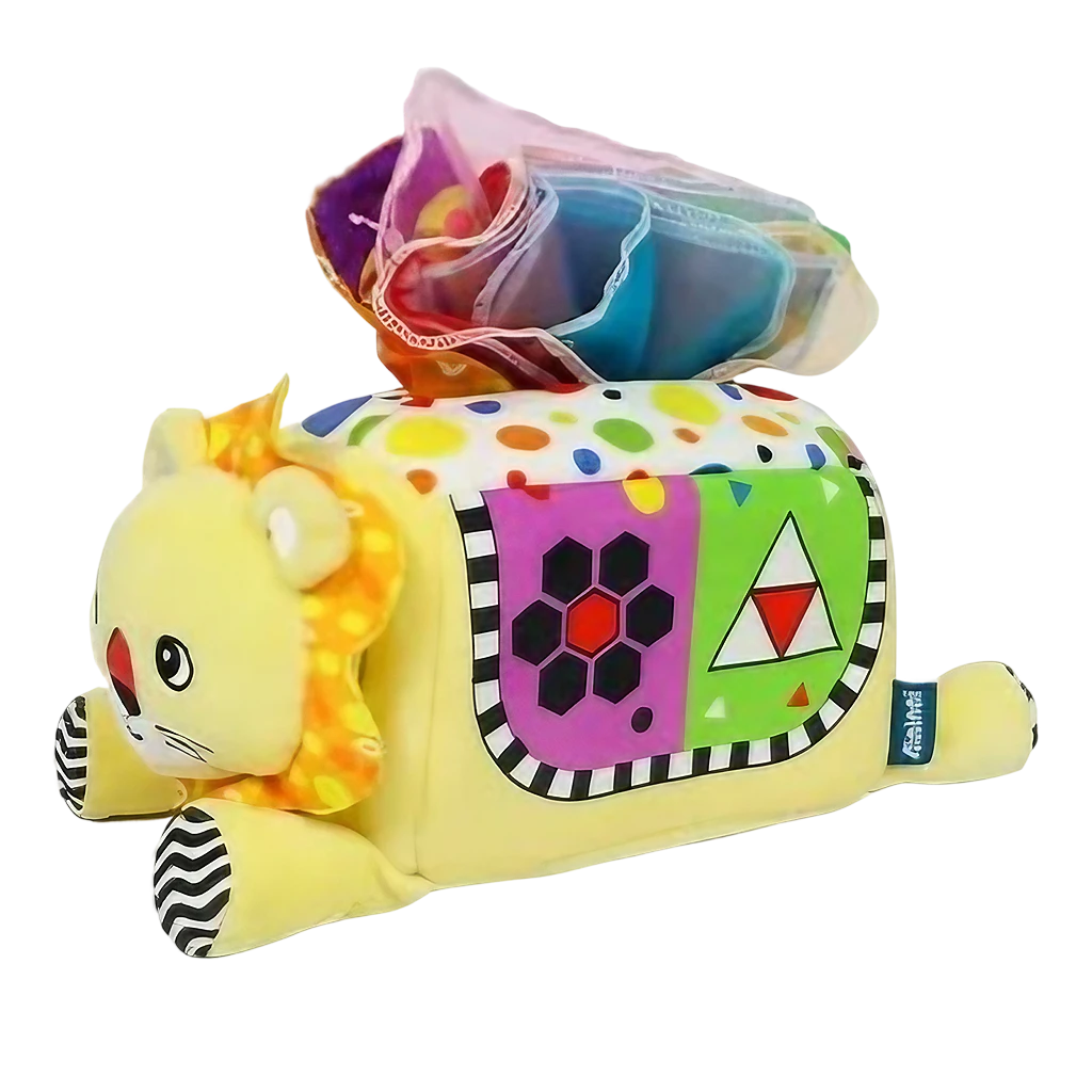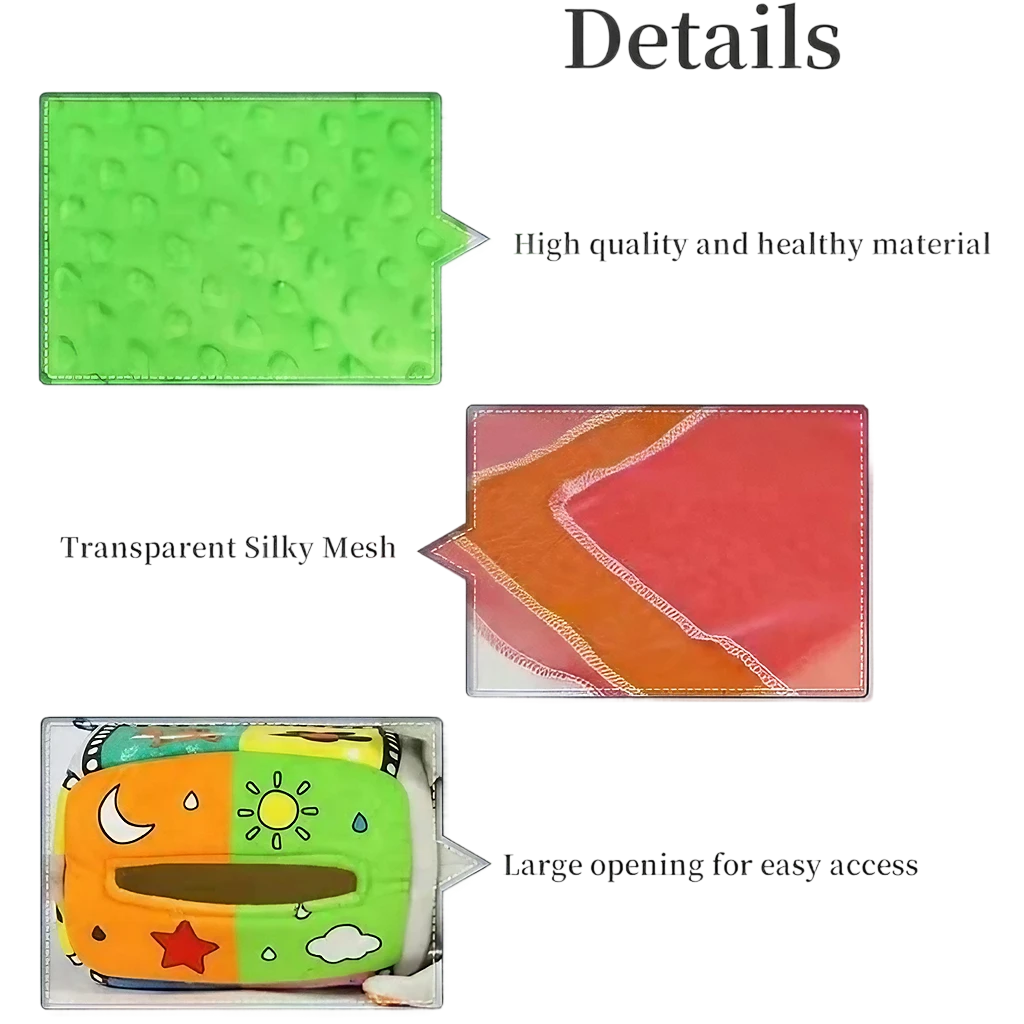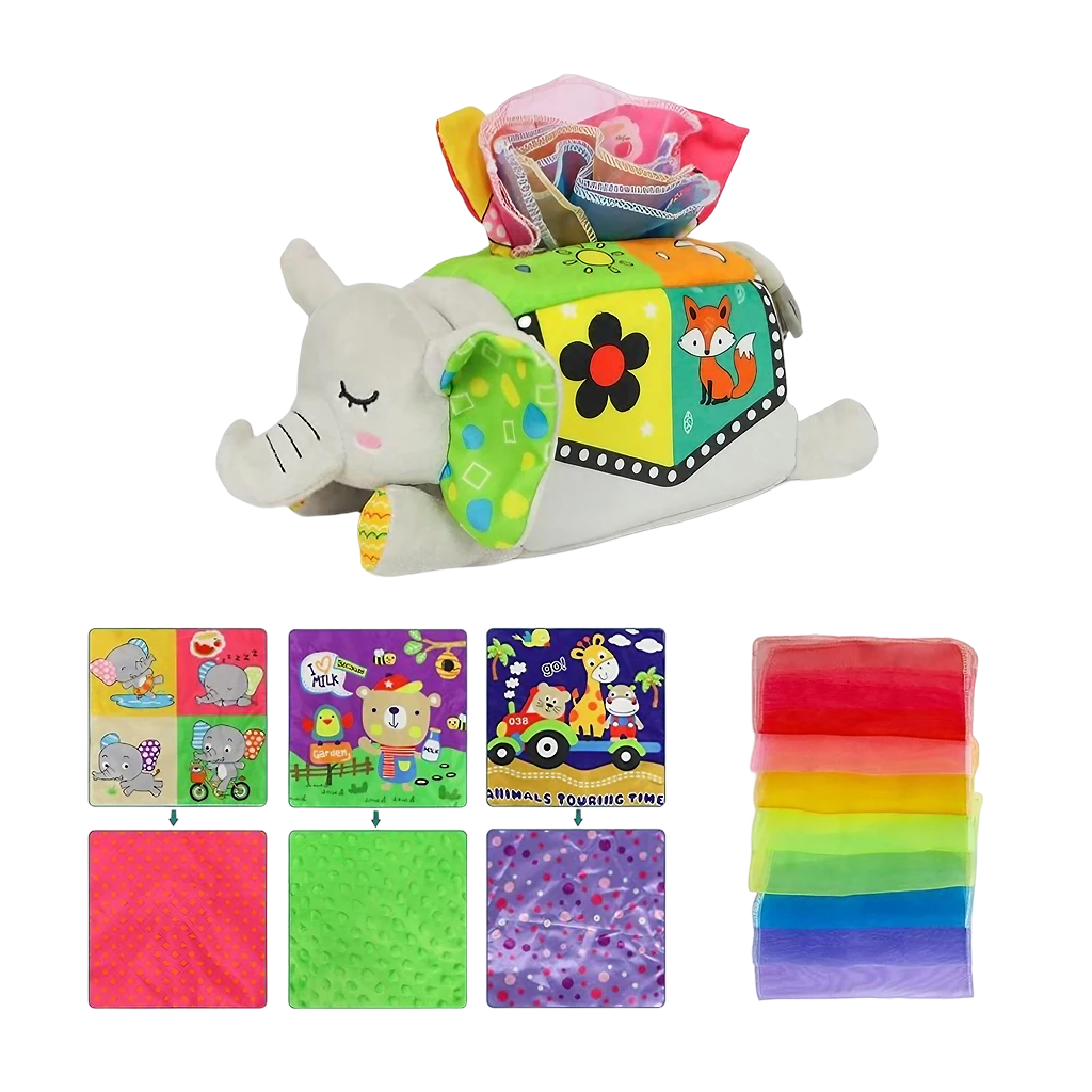 ¡Lleva la diversión y la estimulación a otro nivel con nuestro PELUCHE CON TELA SENSORIAL! Contiene telas de diferentes colores y texturas que atraen la atención de los niños y favorecen el desarrollo de sus habilidades visuales, táctiles y auditivas. ¡Un juguete ideal para aprender jugando!