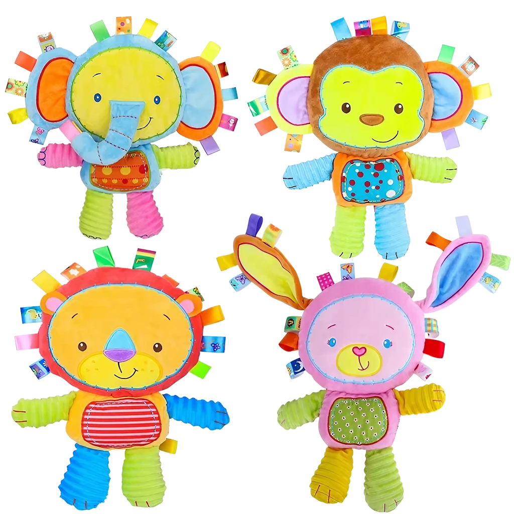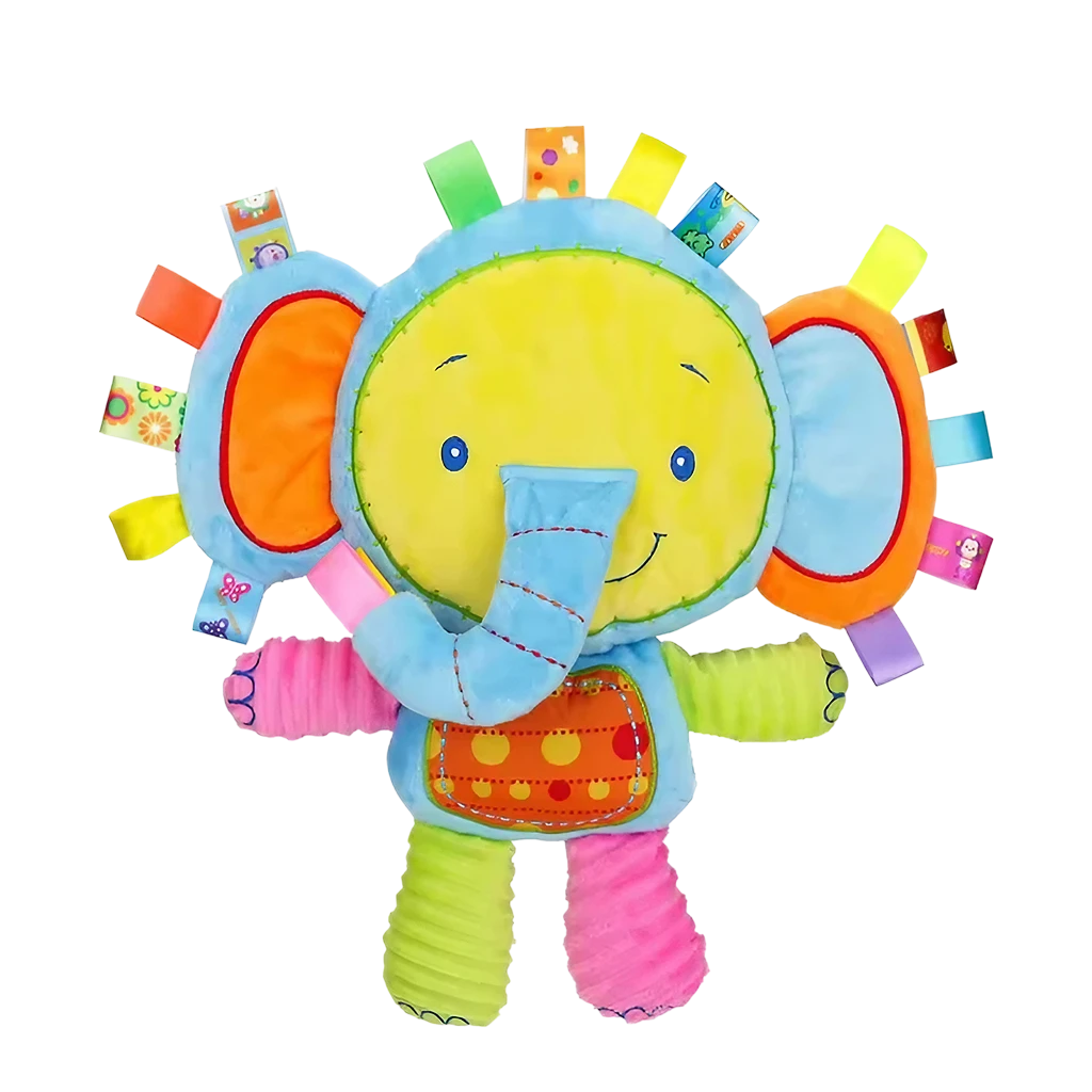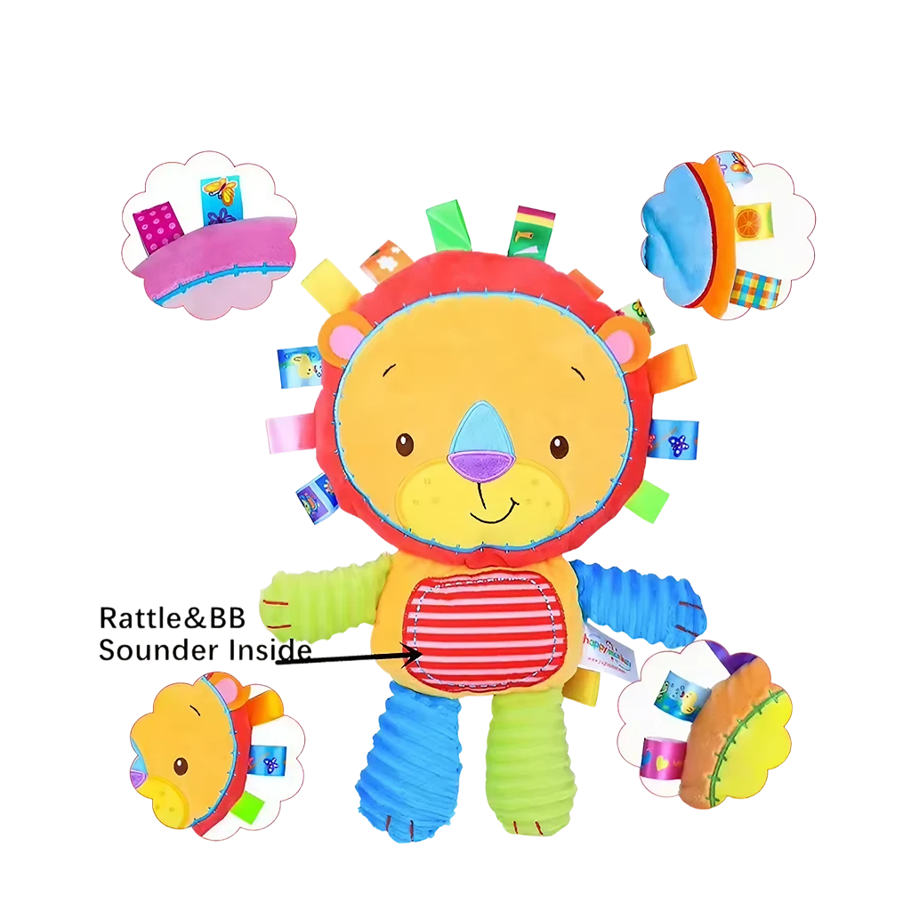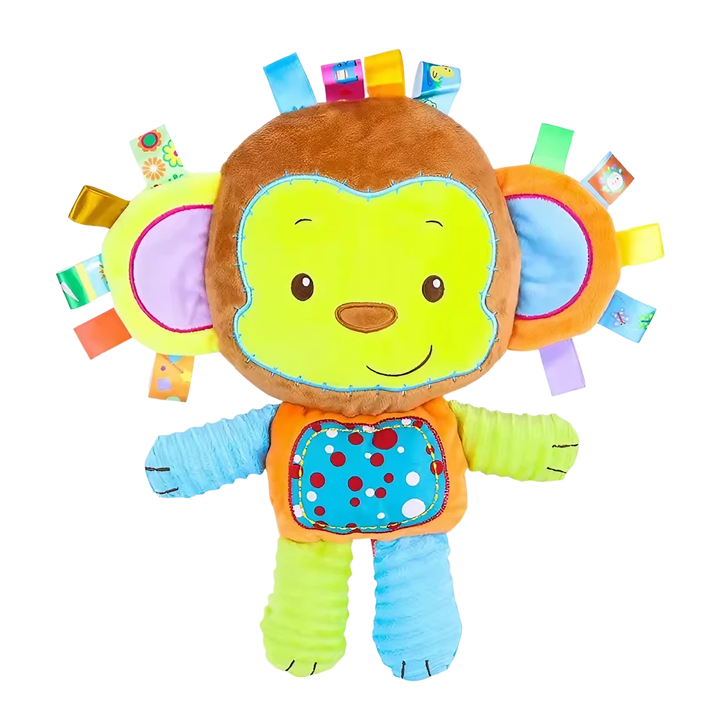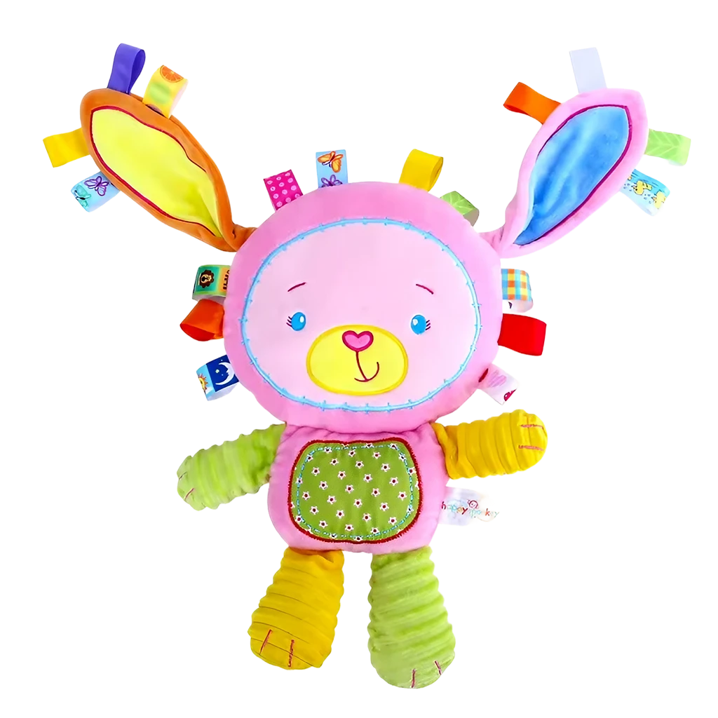 ¡Acompaña a tu bebé todo el tiempo con nuestro peluche de apego! Con texturas y sonaja para estimular su audición, y colores llamativos para su desarrollo visual. ¡Este peluche es ideal para calmar y entretener a tu bebé en todo momento!