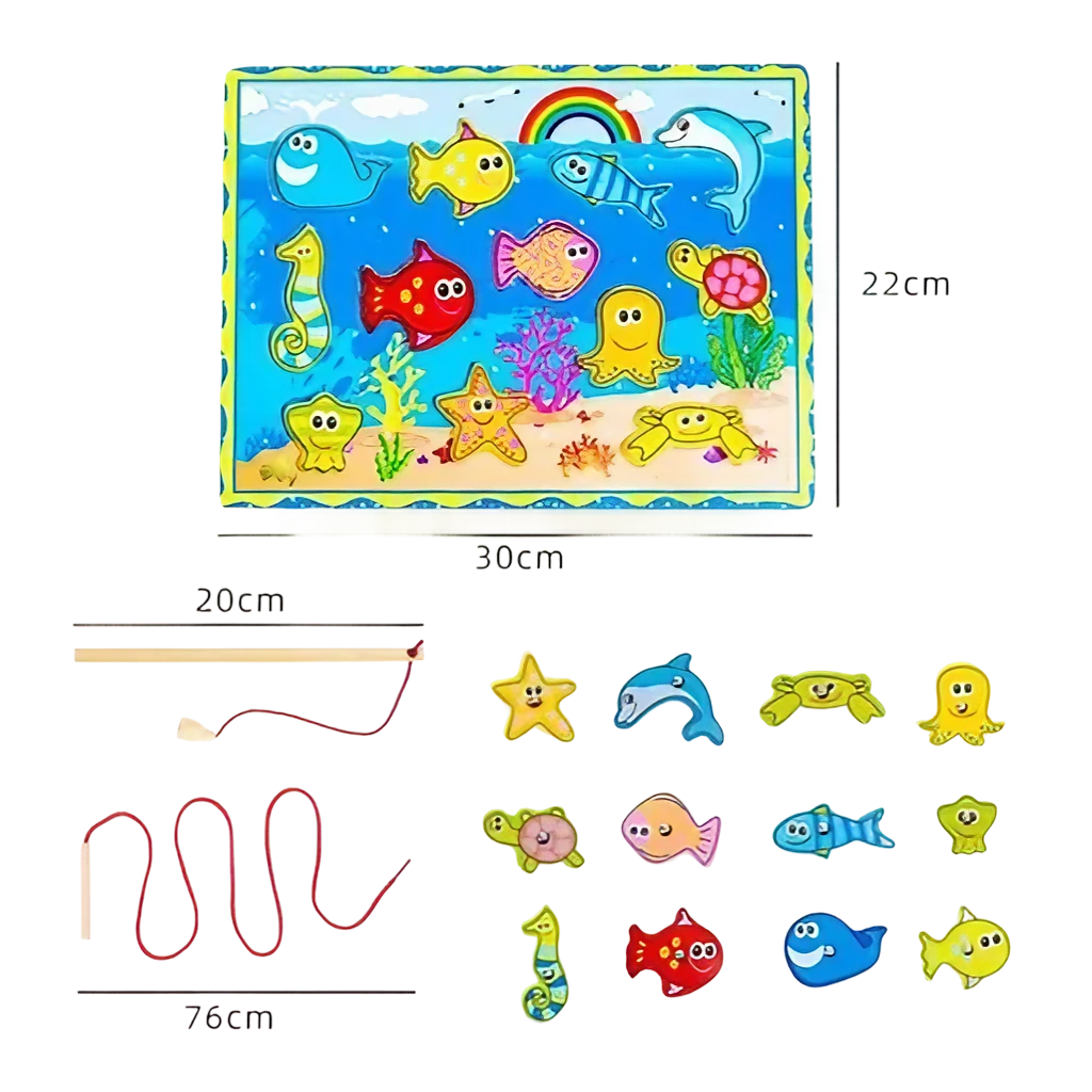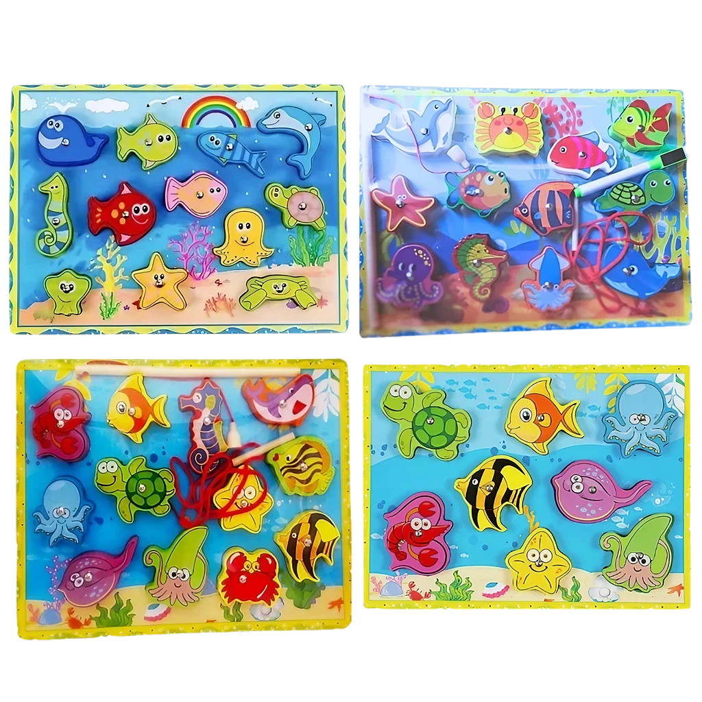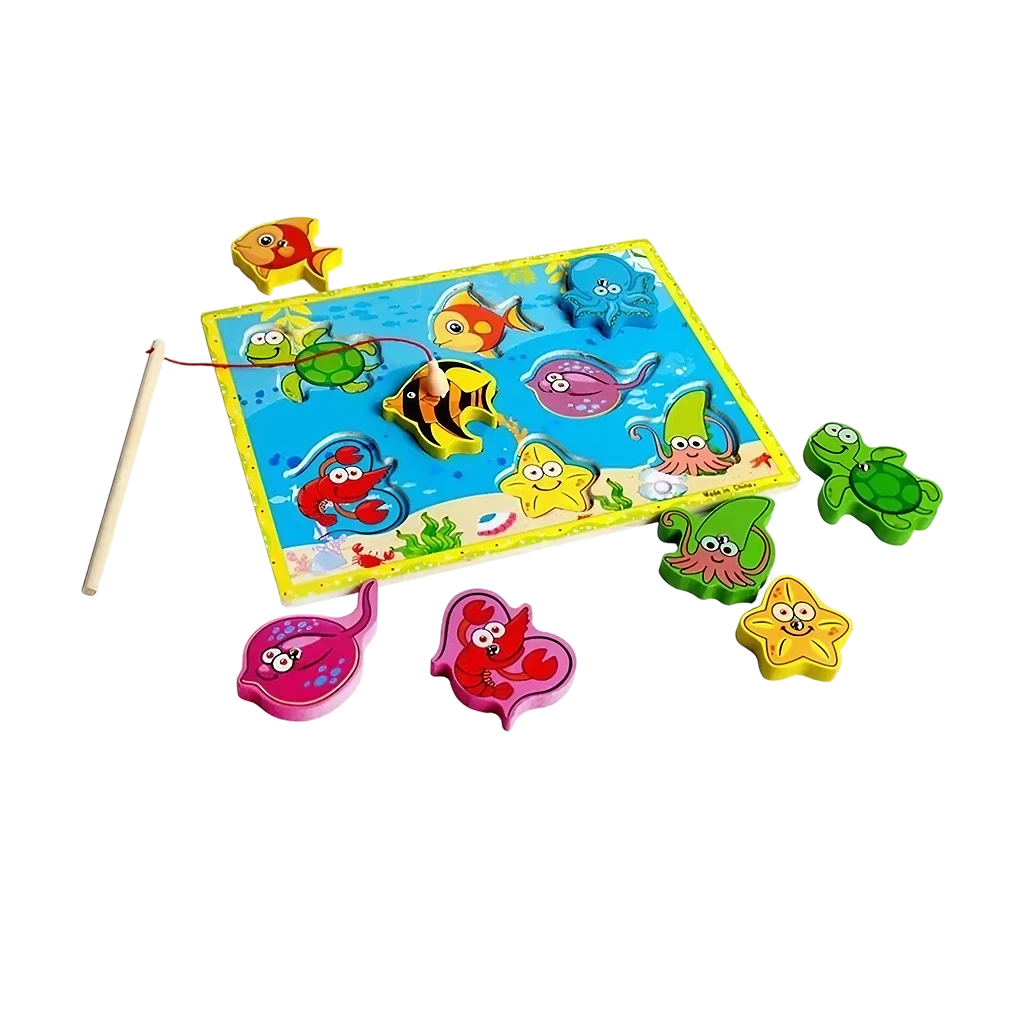 ¡Desarrolla habilidades mientras te diviertes con nuestro Juguete de Pesca Magnética y Rompecabezas 3D! Con un palo magnético, los niños pueden 'atrapar' 12 amigos marinos y luego devolverlos al océano. Aprenderán sobre animales acuáticos y mejorarán su coordinación, habilidades motoras y emparejamiento. Hecho con materiales seguros y no tóxicos, ¡es perfecto para niños de 3 años en adelante!