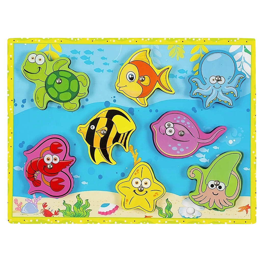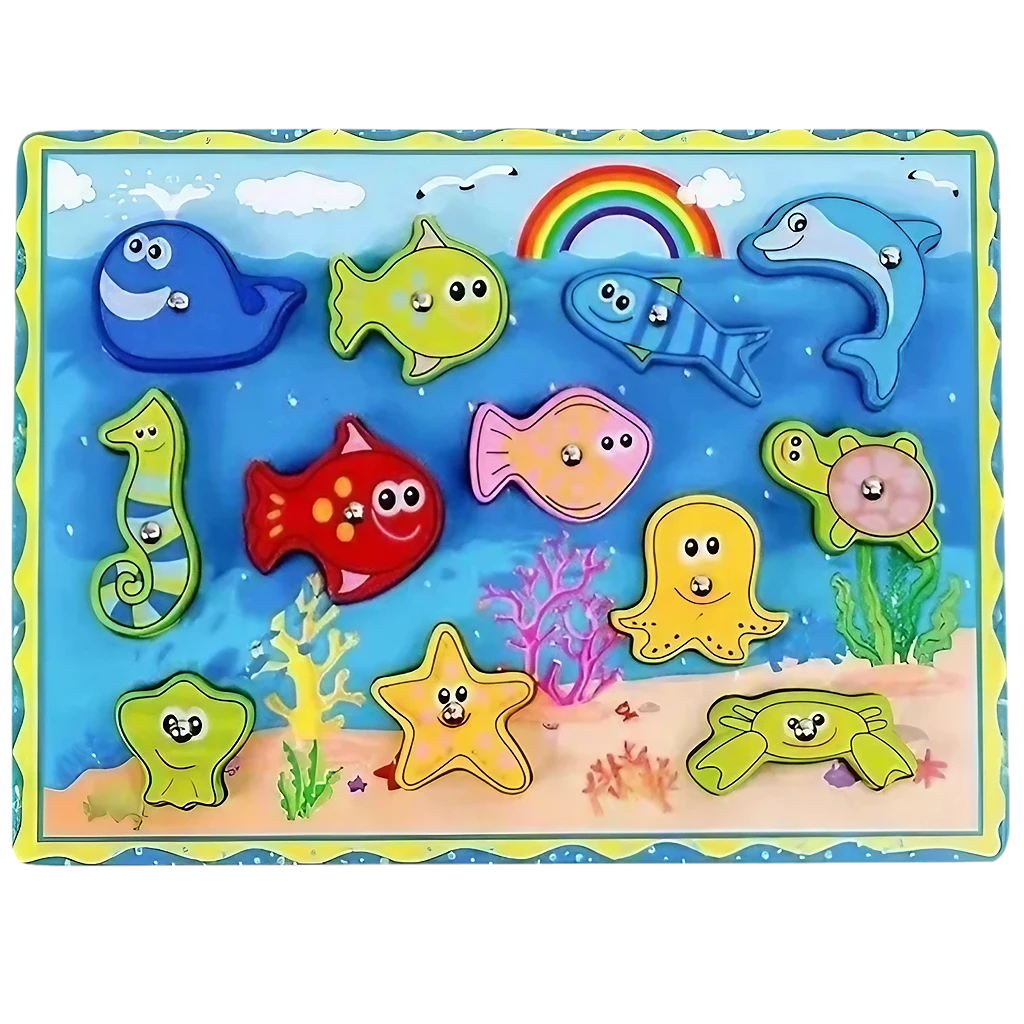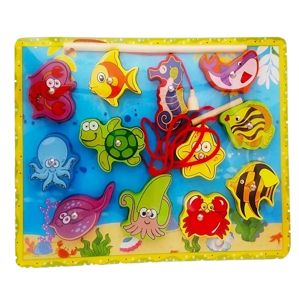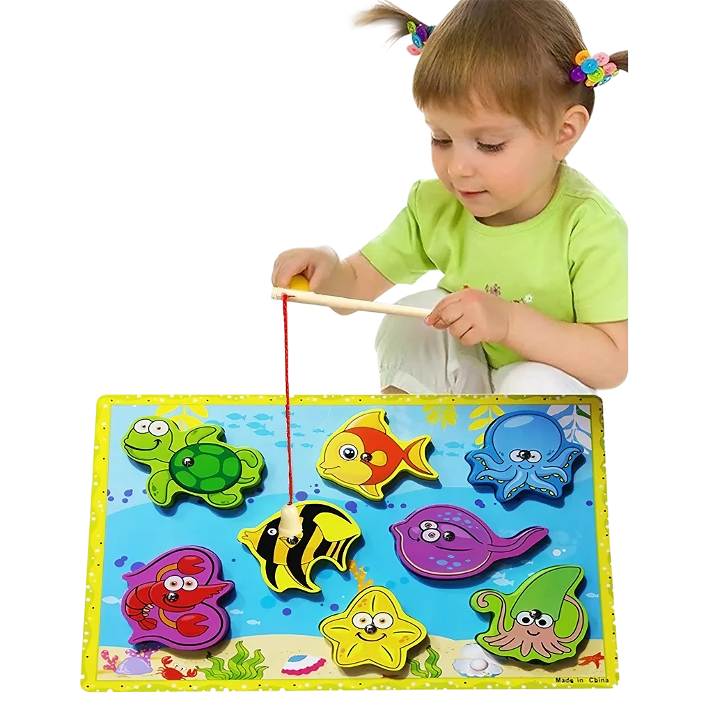 ¡Desarrolla habilidades mientras te diviertes con nuestro Juguete de Pesca Magnética y Rompecabezas 3D! Con un palo magnético, los niños pueden 'atrapar' 12 amigos marinos y luego devolverlos al océano. Aprenderán sobre animales acuáticos y mejorarán su coordinación, habilidades motoras y emparejamiento. Hecho con materiales seguros y no tóxicos, ¡es perfecto para niños de 3 años en adelante!
