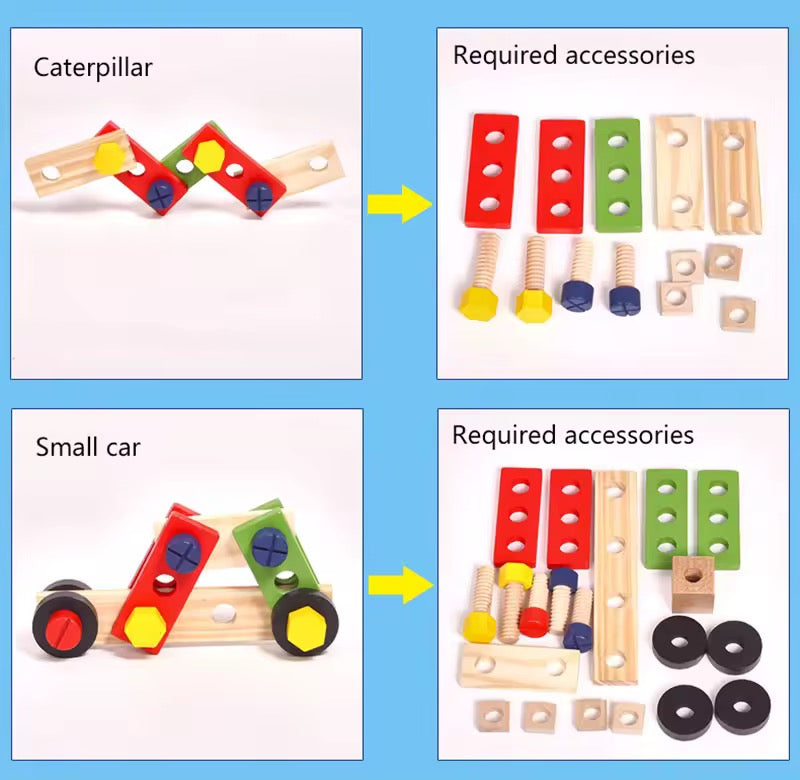 Este set de herramientas de madera para niños es ideal para estimular la coordinación visomotora y fomentar la creatividad e imaginación. Diseñado con materiales seguros y acabados no tóxicos, es perfecto para que los pequeños desarrollen habilidades cognitivas y de razonamiento a través del juego simbólico. Incluye un estuche de madera resistente y portátil con asa, facilitando su almacenamiento y transporte. Perfecto para actividades didácticas, reuniones familiares y juegos tanto en interiores como al aire libre, este conjunto ofrece una experiencia divertida y educativa para los futuros carpinteros.