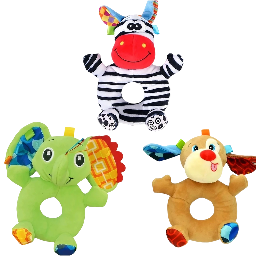 ¡Estimula los sentidos de tu bebé con SONAJA DONA FELPA! Estas sonajeras en forma de donas ofrecen texturas en las orejas y un sonido suave y relajante para tu bebé. Colócalas en su muñeca y disfruta de su entusiasmo mientras explora el mundo a través del juego. ¡Un juguete divertido y educativo para tu pequeño!