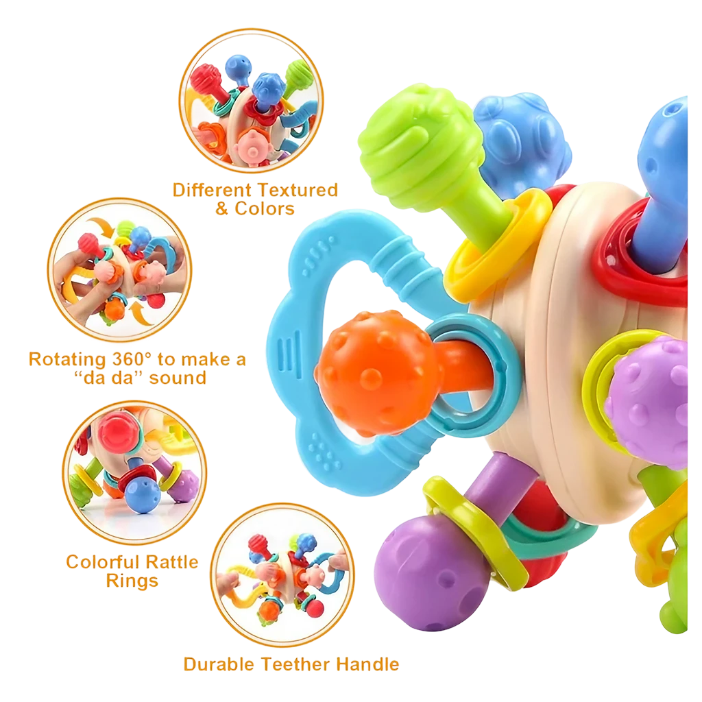 ¡Con nuestro SONAJERO MORDEDOR DE SILICONA - BOLA SENSORIAL, tu bebé no solo aliviará el dolor de la dentición, sino que también tendrá una experiencia sensorial única! Hecho de silicona segura y materiales no tóxicos, este juguete proporciona un alivio suave y sin irritaciones. ¡Ideal para bebés de 0 a 12 meses!