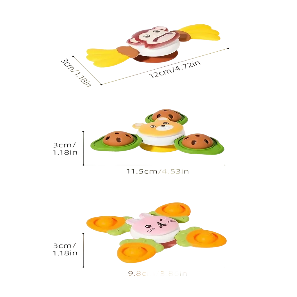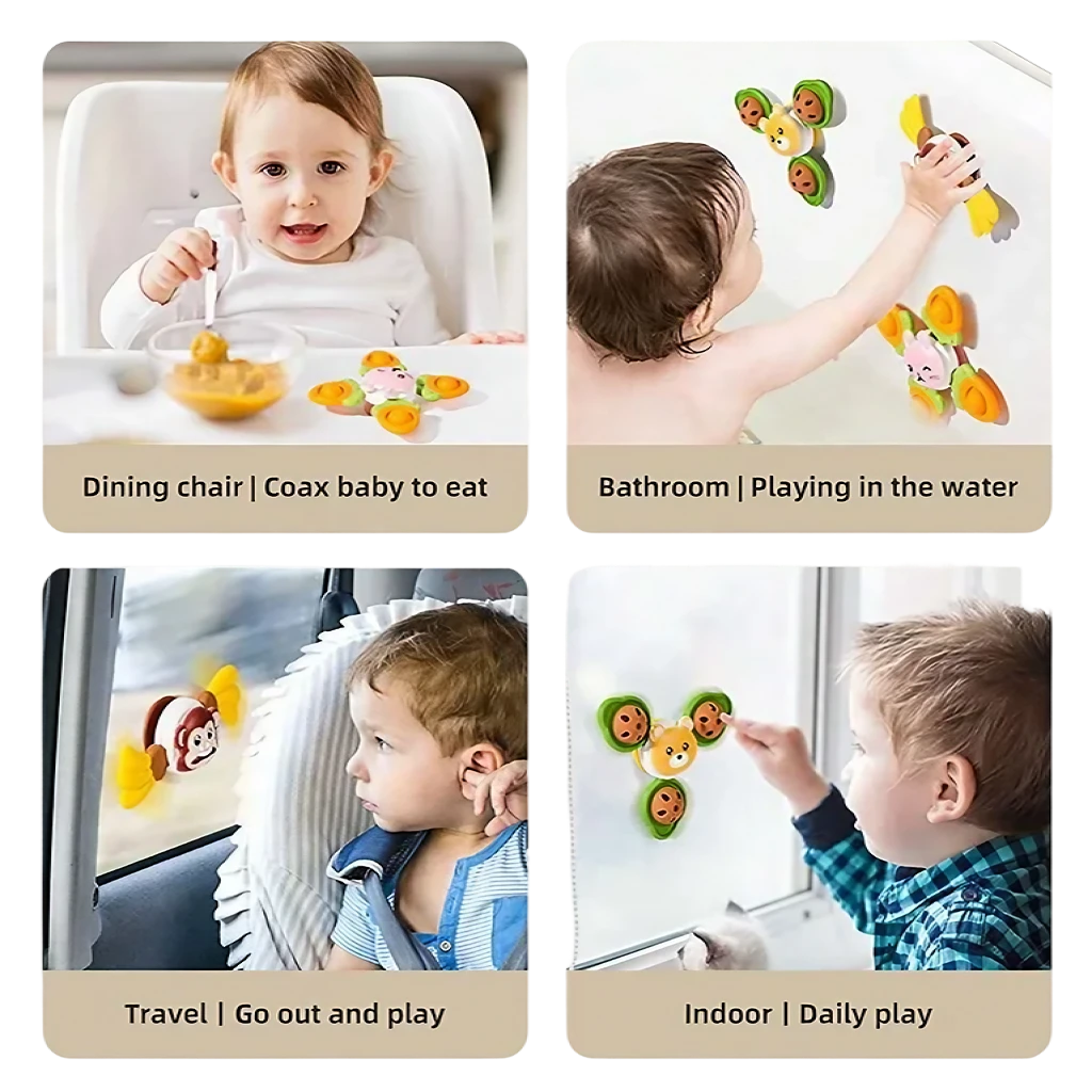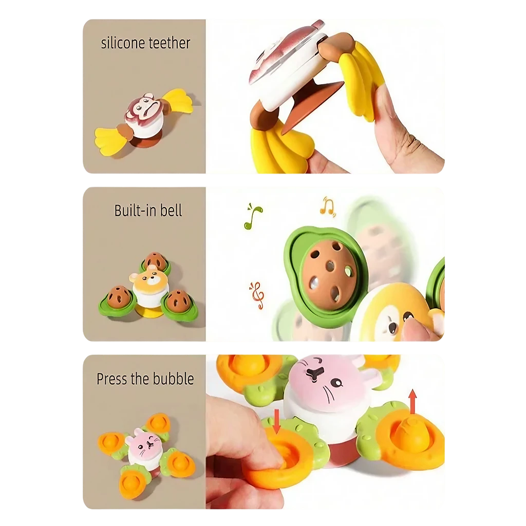 ¡Diviértete en cualquier momento del día con los spinners de silicona! Cuentan con sonaja, popit y mordedor para mayor entretenimiento. Además, pegalos en ventana, pared, mesa o pared para la bañera, así tu bebé también puede disfrutar jugando. ¡Haz que se divierta mientras aprende!