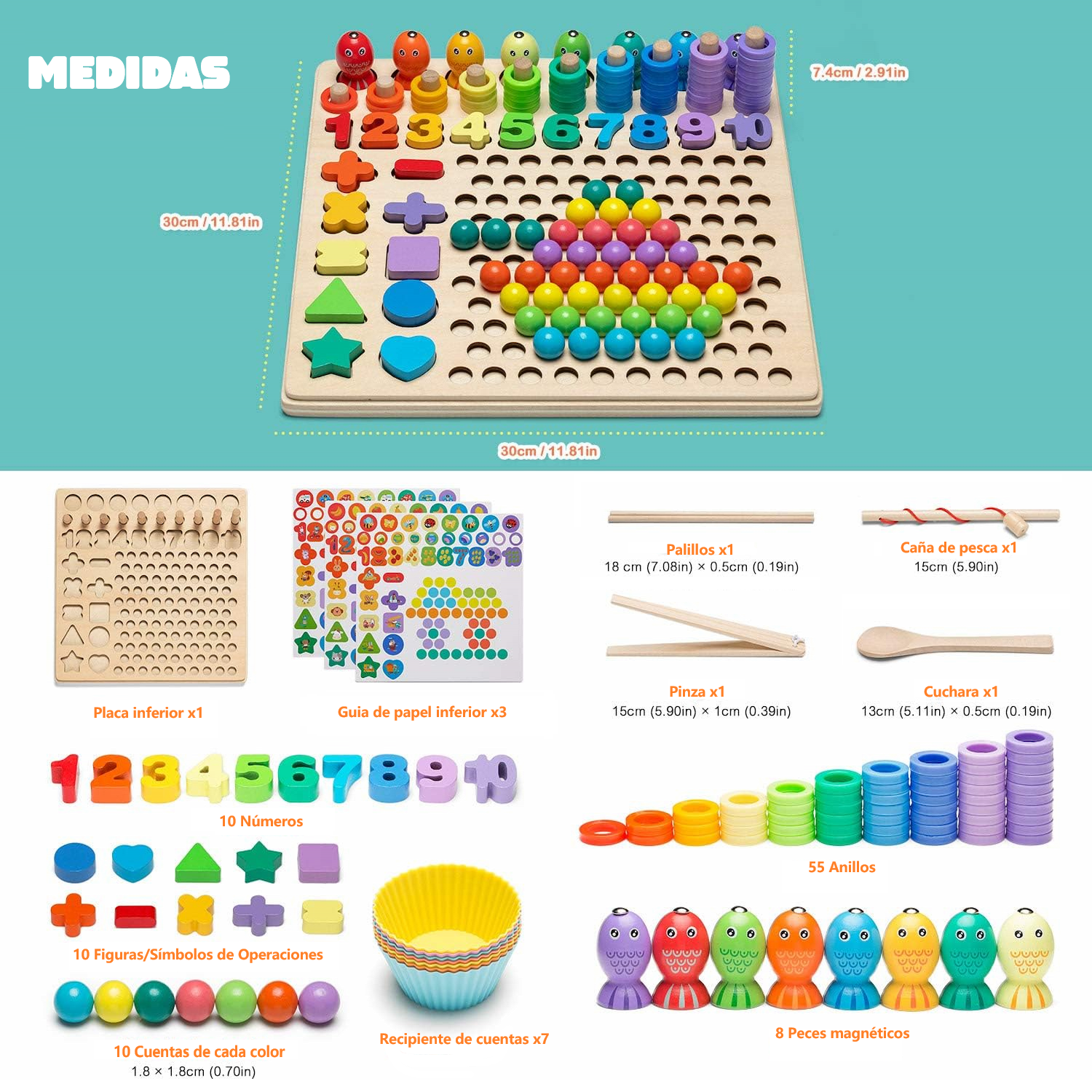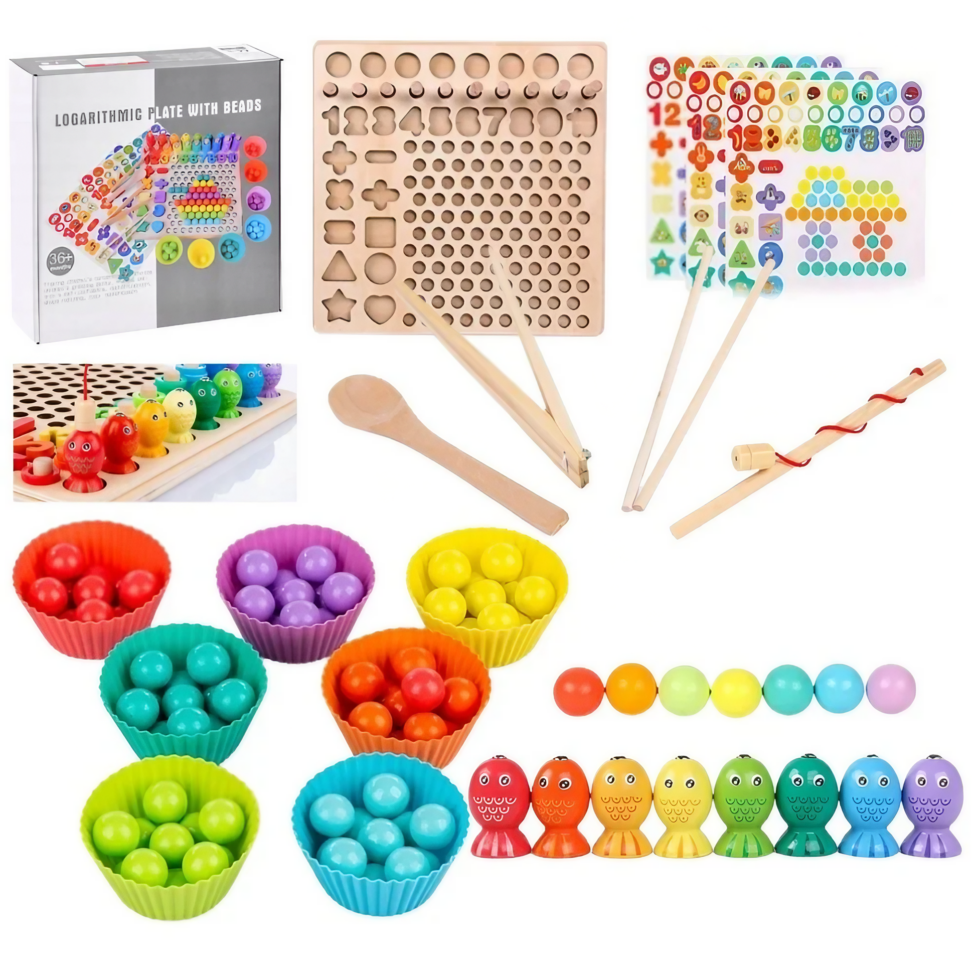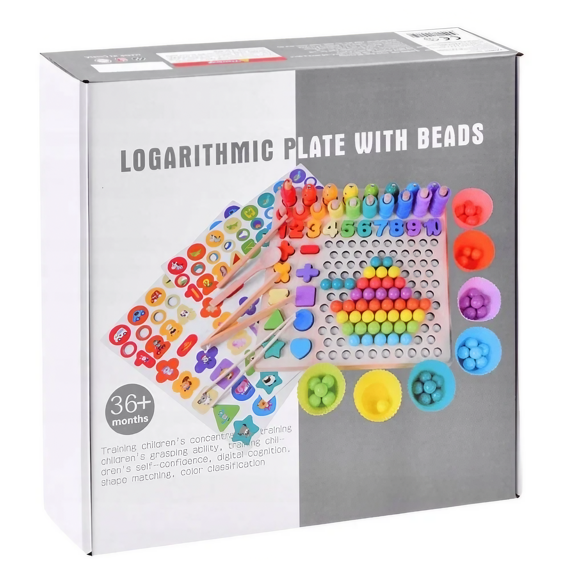 Montessori Logarithm Board is an educational game that strengthens children's memory and learning. With beads and puzzles, children can create patterns and improve their cognitive ability. In addition, they have digital blocks to recognize numbers and shapes, and a trap game to solve the relationship between numbers and quantities. Learning math has never been so fun!