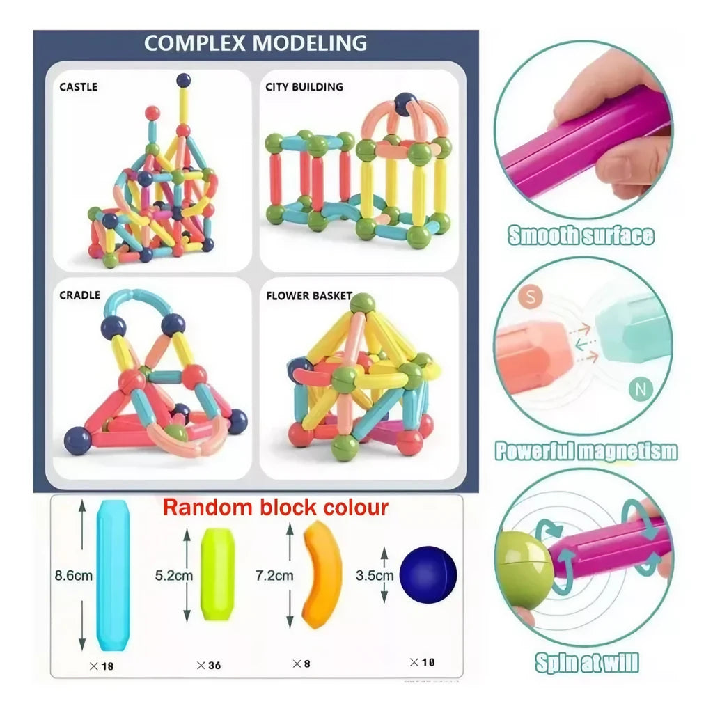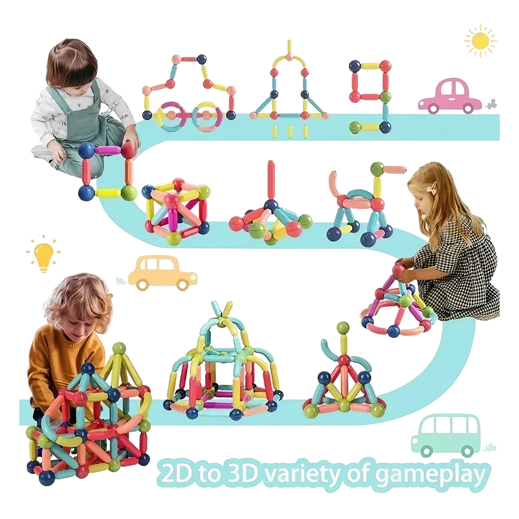 ¡Descubre una aventura de construcción sin límites con las BARRAS MAGNETICAS! Este increíble set ofrece horas de entretenimiento y aprendizaje para niños y niñas. Su llamativo y colorido diseño inspirará la imaginación y creatividad de los pequeños constructores. Además, desarrolla habilidades motoras, coordinación mano-ojo y creatividad. Incluye accesorios adicionales para ampliar la diversión.