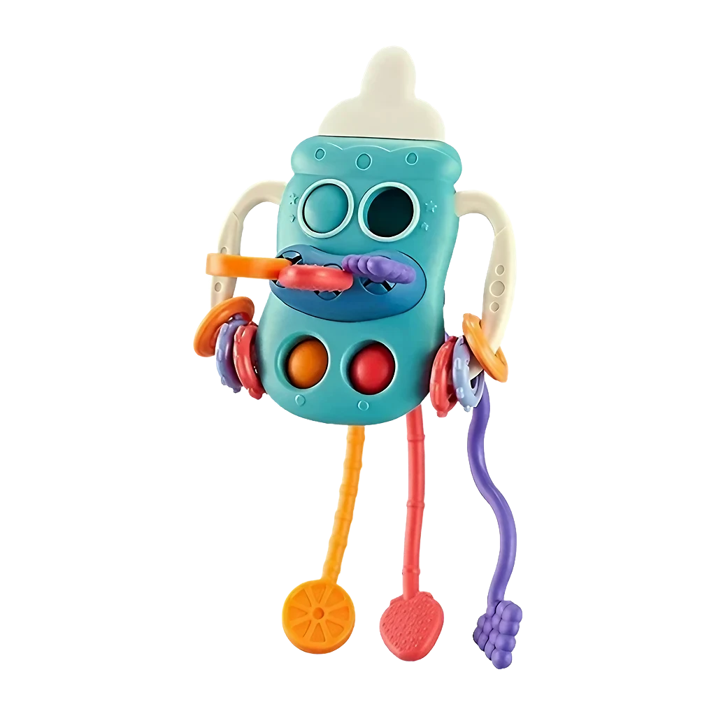 Disfrute de horas de diversión y estimulación con BIBERON SENSORIAL 5 EN 1. Esta versátil herramienta de juego Montessori para bebés ofrece botones deslizantes, burbujas para presionar los dedos y una suave goma de silicona para aliviar el dolor de dentición. Mantenga a su pequeño ocupado y comprometido con múltiples funciones de juego. ¡No tóxico y suave para la piel del bebé!