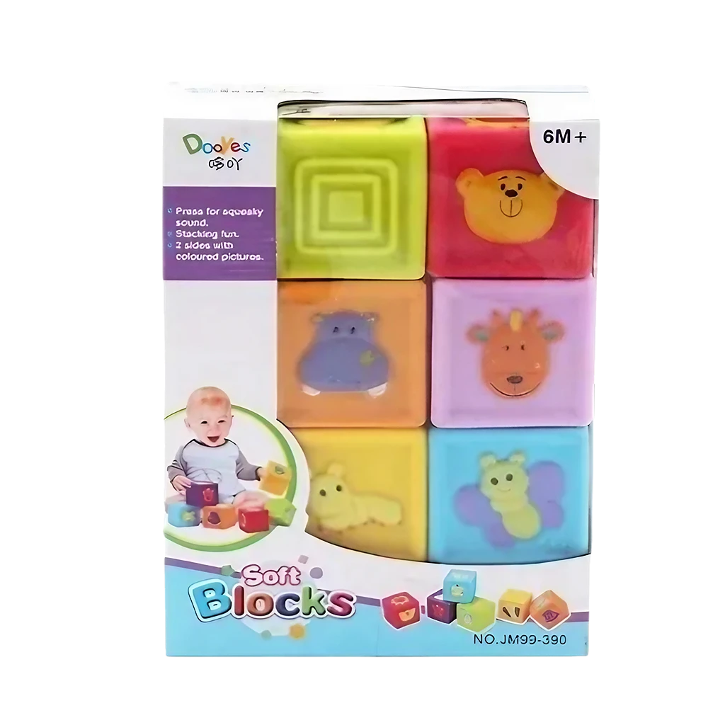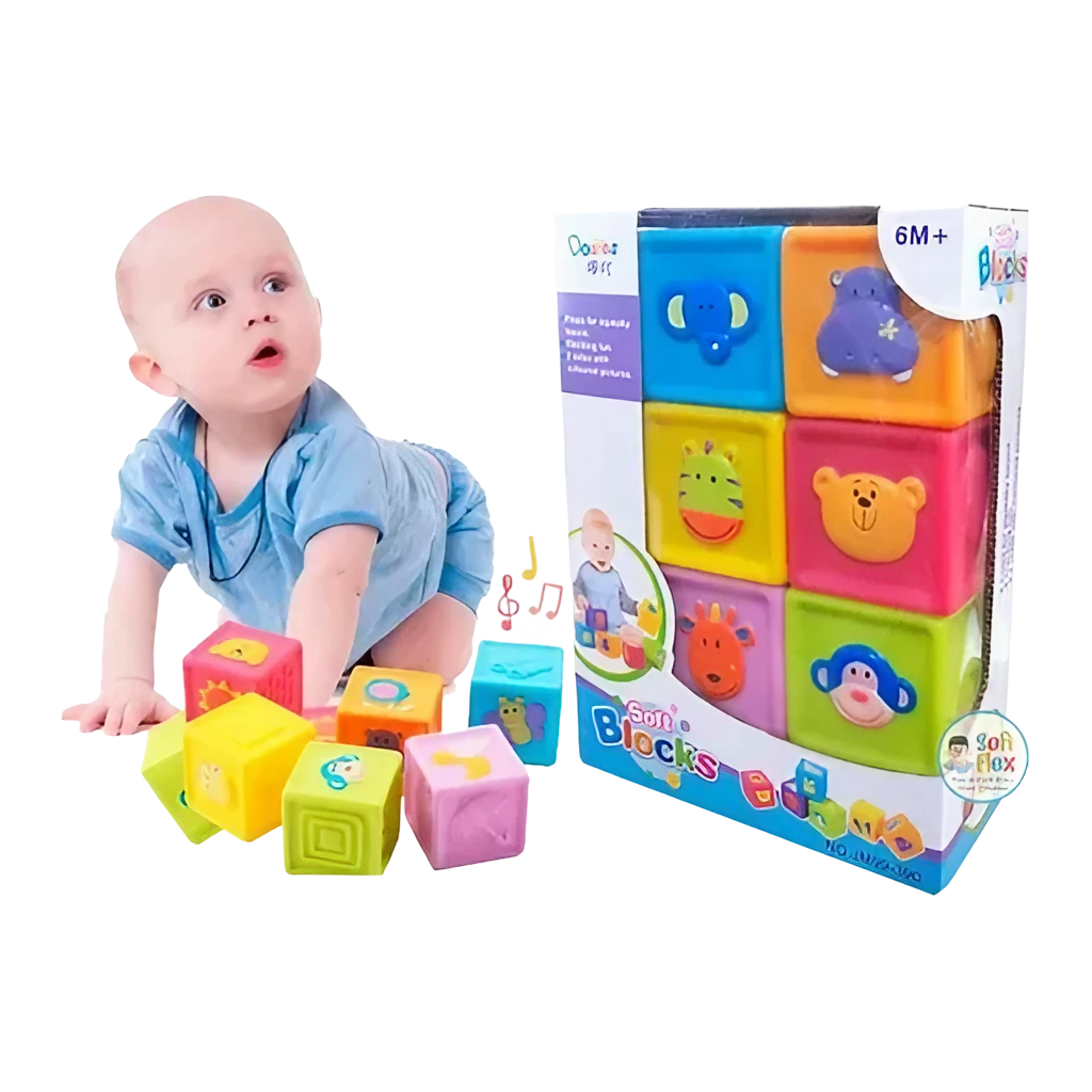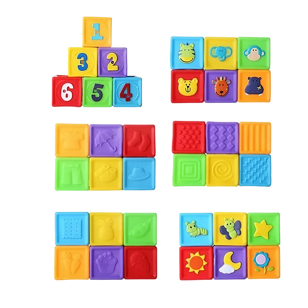 ¡Deje que su bebé explore el mundo de la construcción con BLOCKS BLANDOS! Hechos de goma suave y no tóxica, estos bloques de construcción con números, patrones de animales y texturas estimulan la coordinación mano-ojo y la creatividad del bebé. ¡Un juguete de enseñanza temprana perfecto para niños!