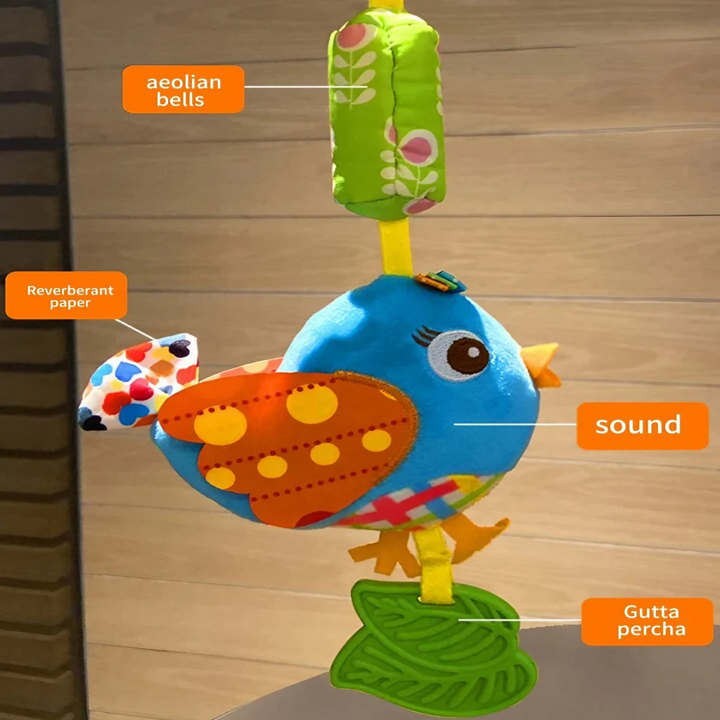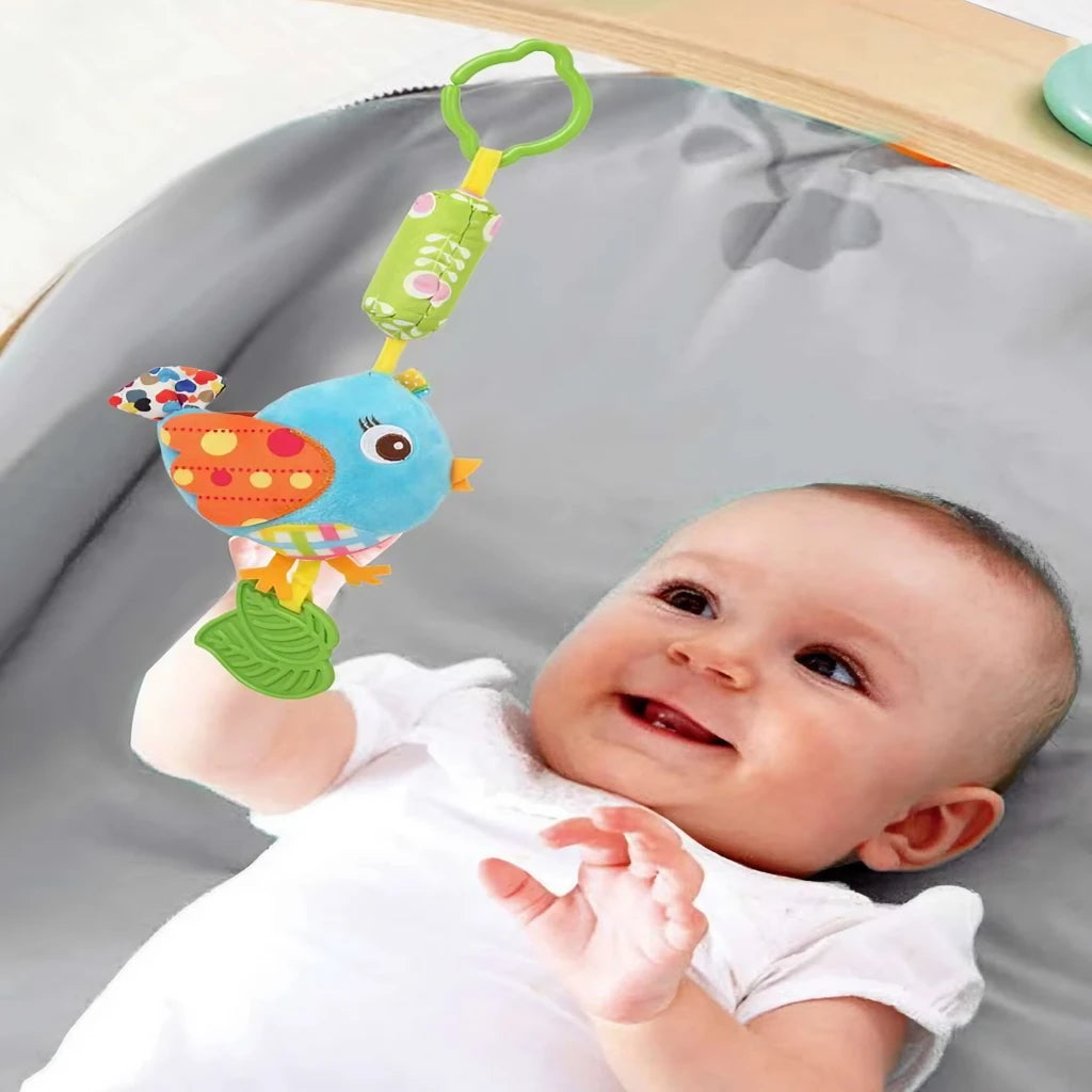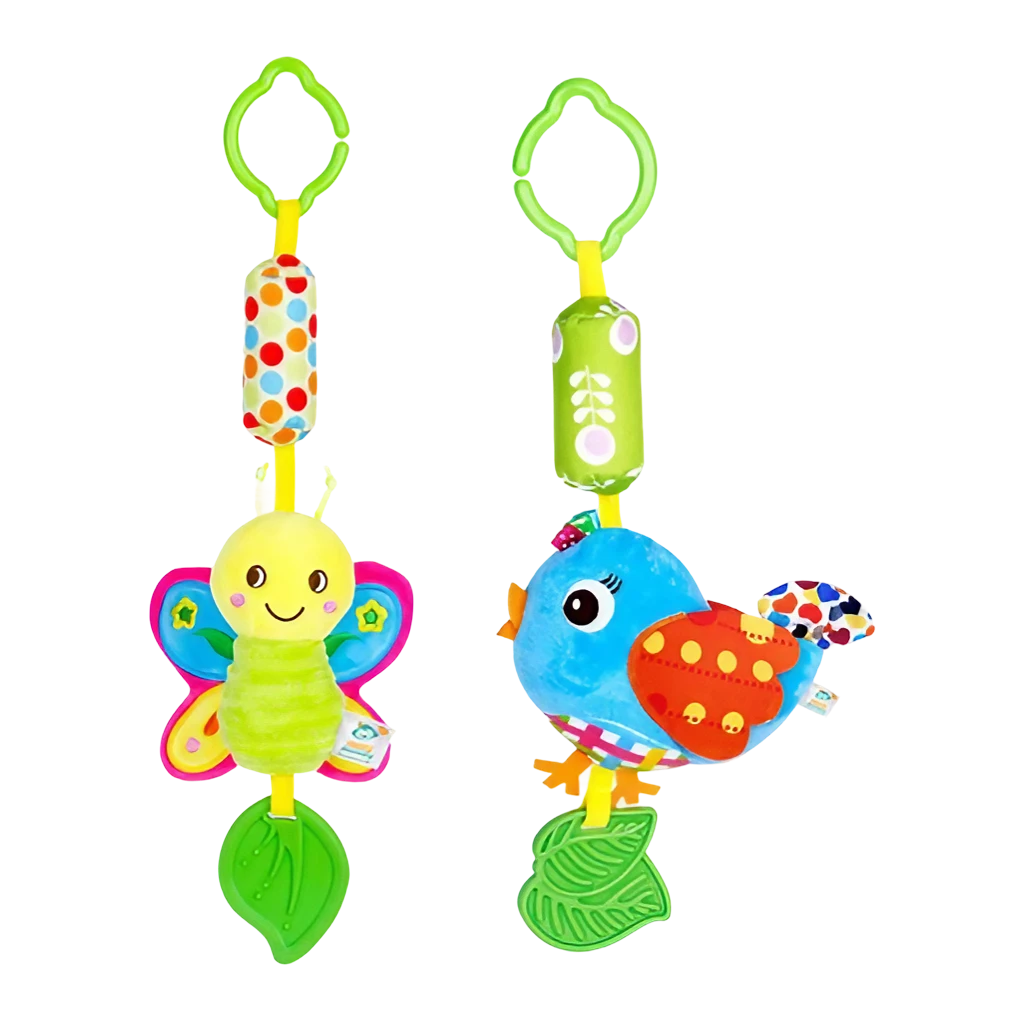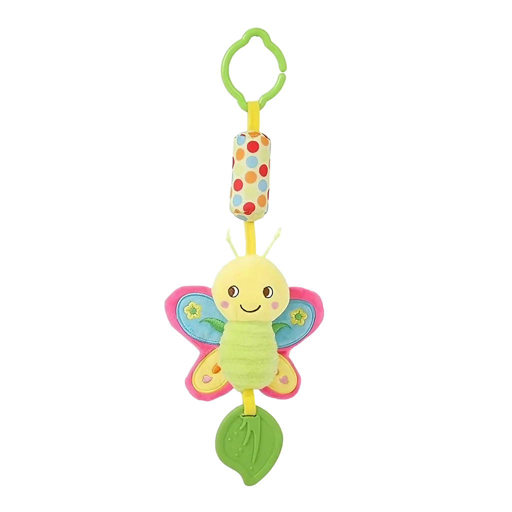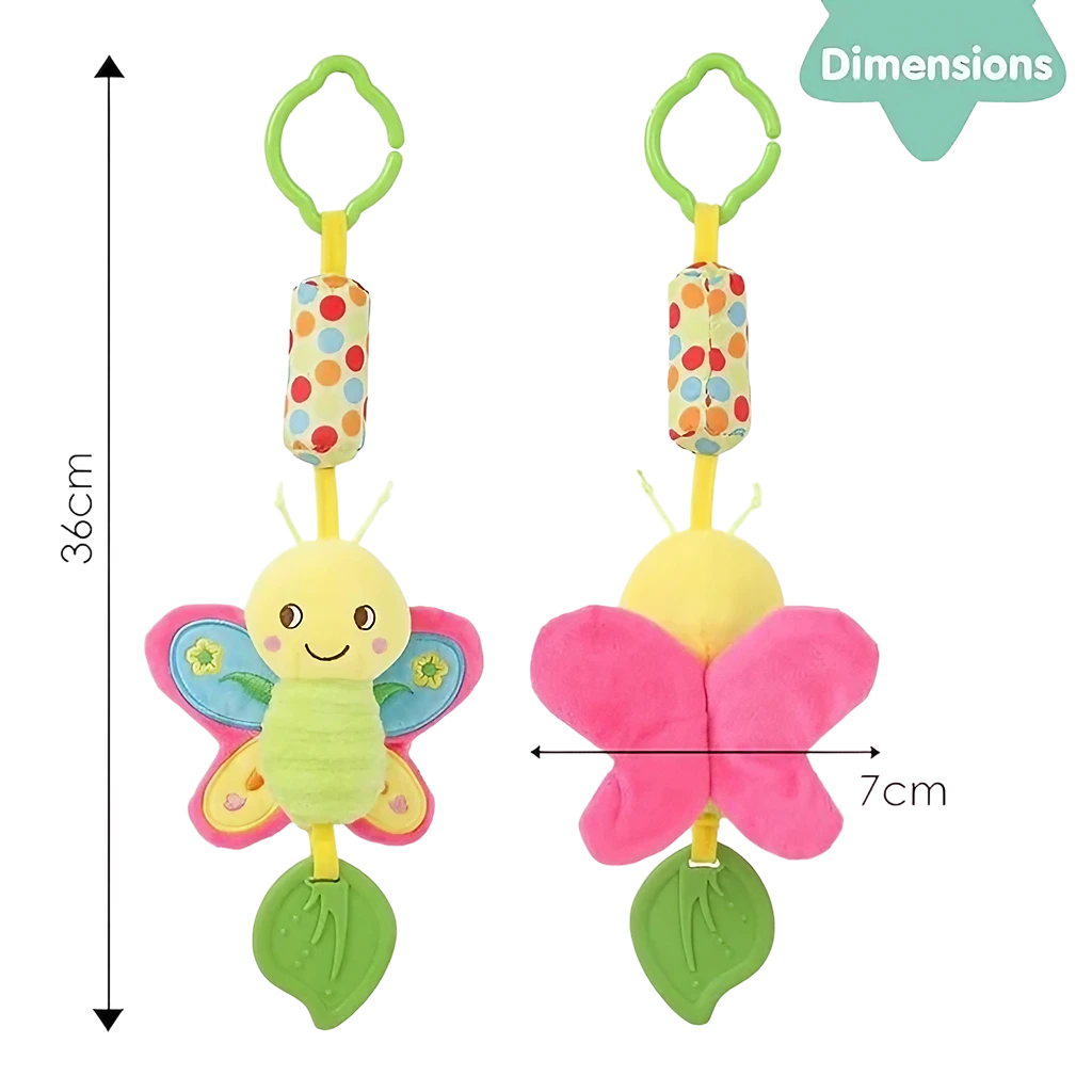 ¡Este hermoso colgante cuenta con una mariposa y un pajarito que estimulan los sentidos de tu bebé! Con texturas, sonido, mordedor de silicona y una sonaja, ¡tu bebé nunca se aburrirá en su cochecito! ¡Haz que cada paseo sea una aventura emocionante!