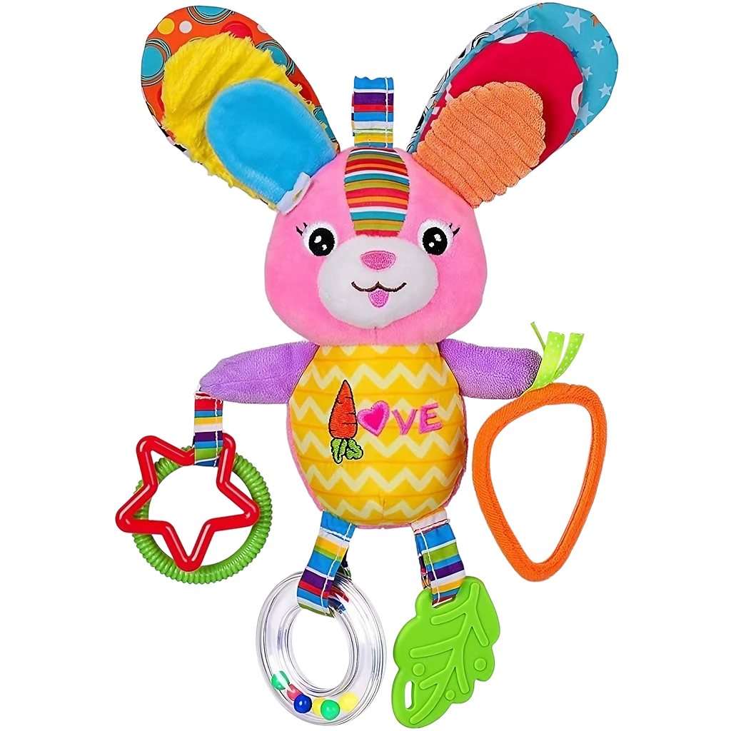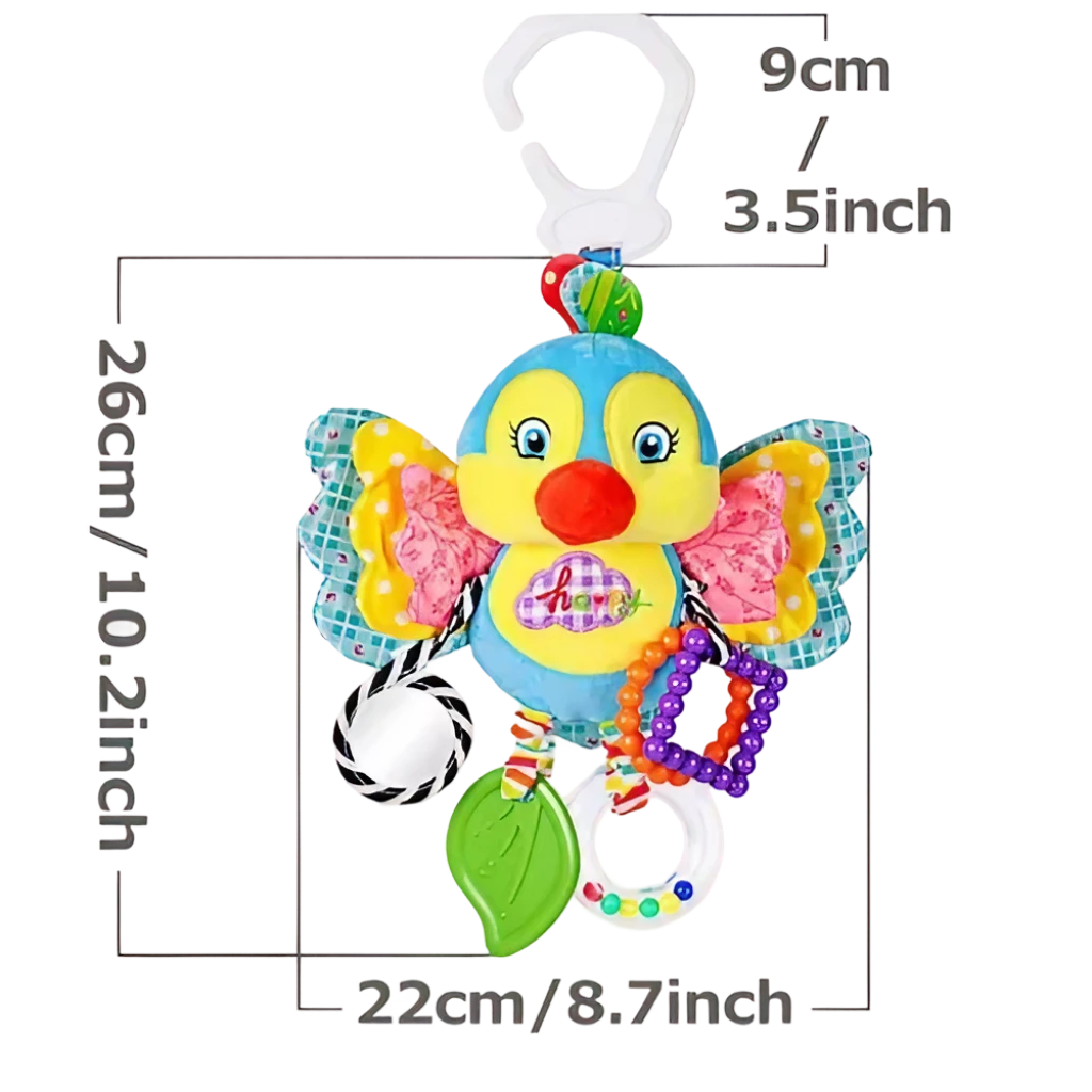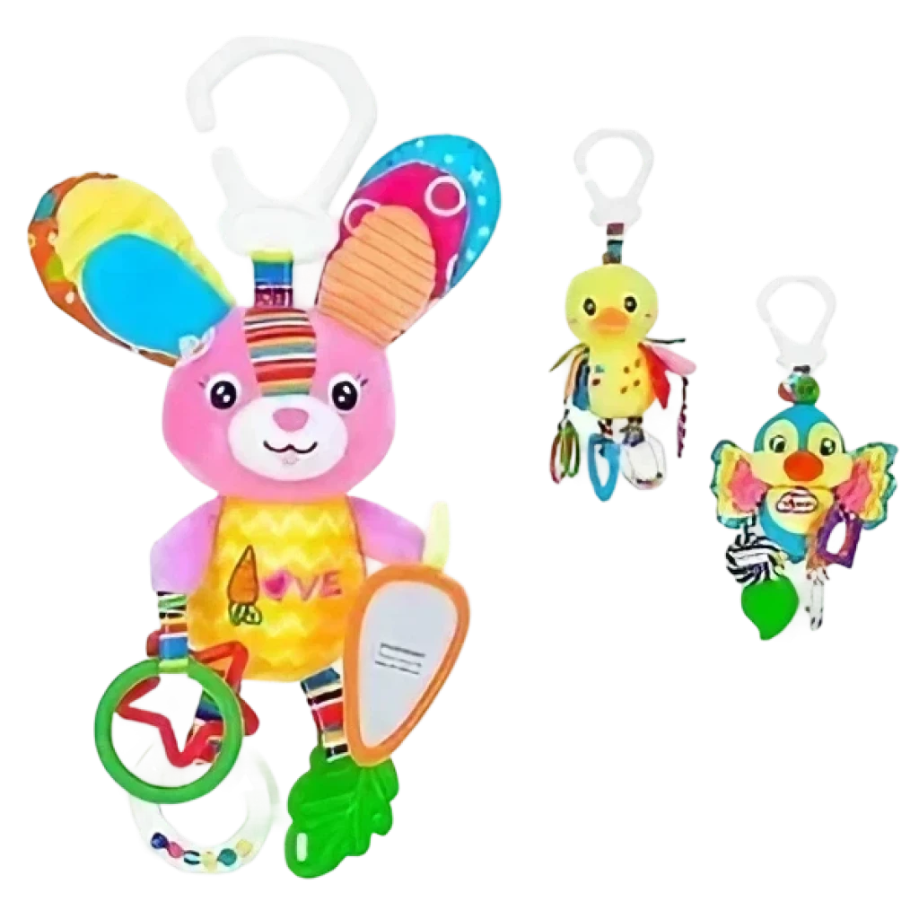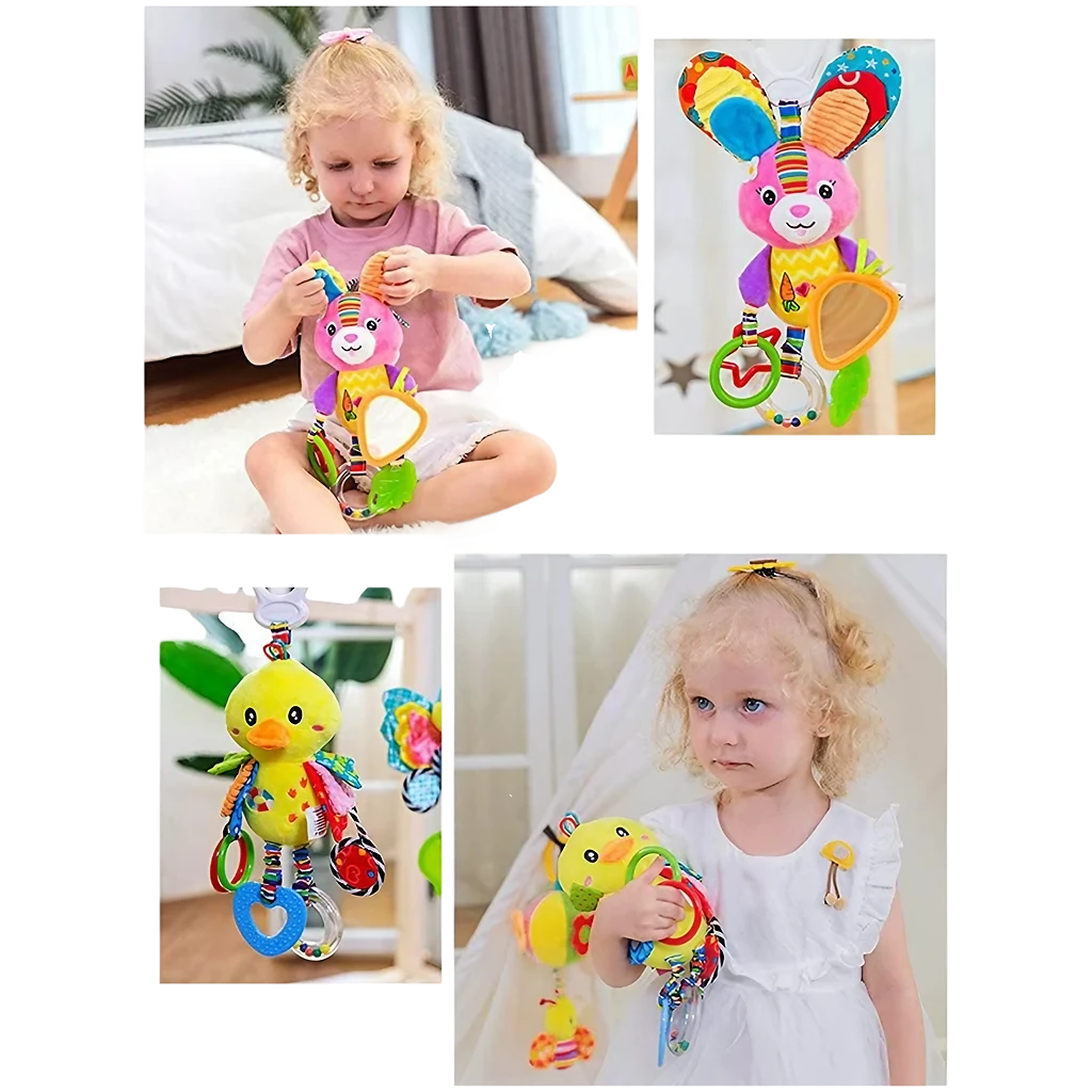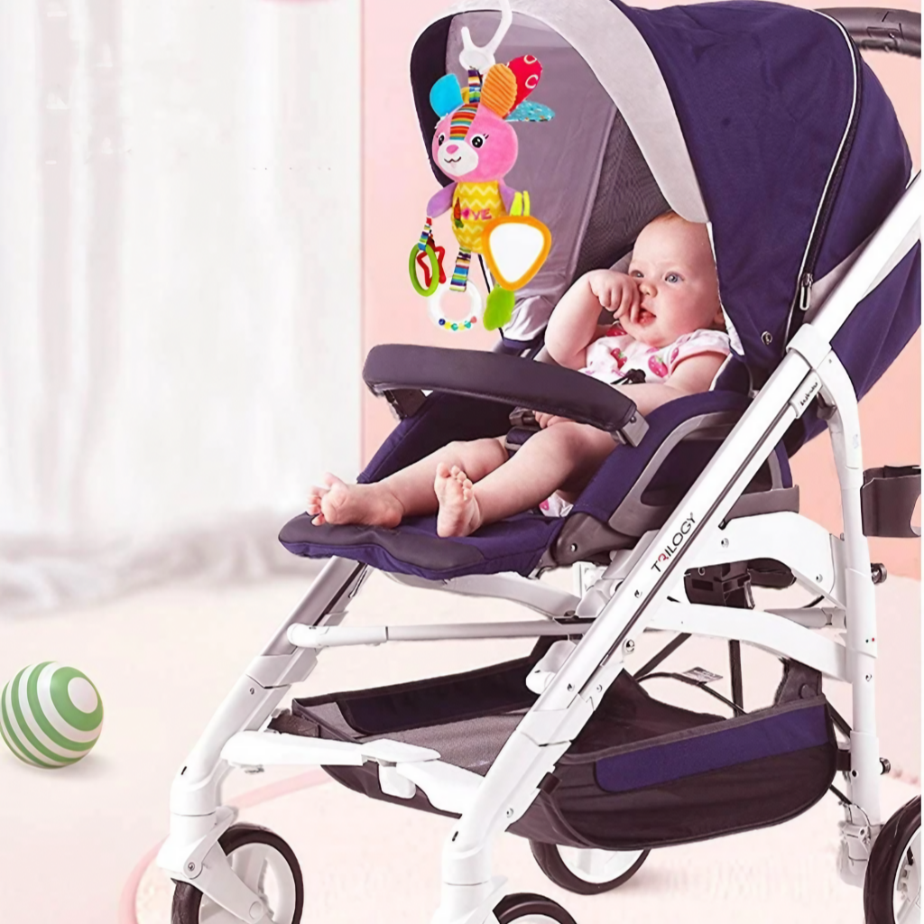 ¡Descubre el mundo sensorial con nuestro COLGANTE SENSORIAL! Con espejo para explorar, mordedor de silicona para aliviar las encías, sonaja para estimular la audición y diferentes texturas para tocar. ¡Ideal para los paseos en coche de tu bebé de 0 a 1 año!
