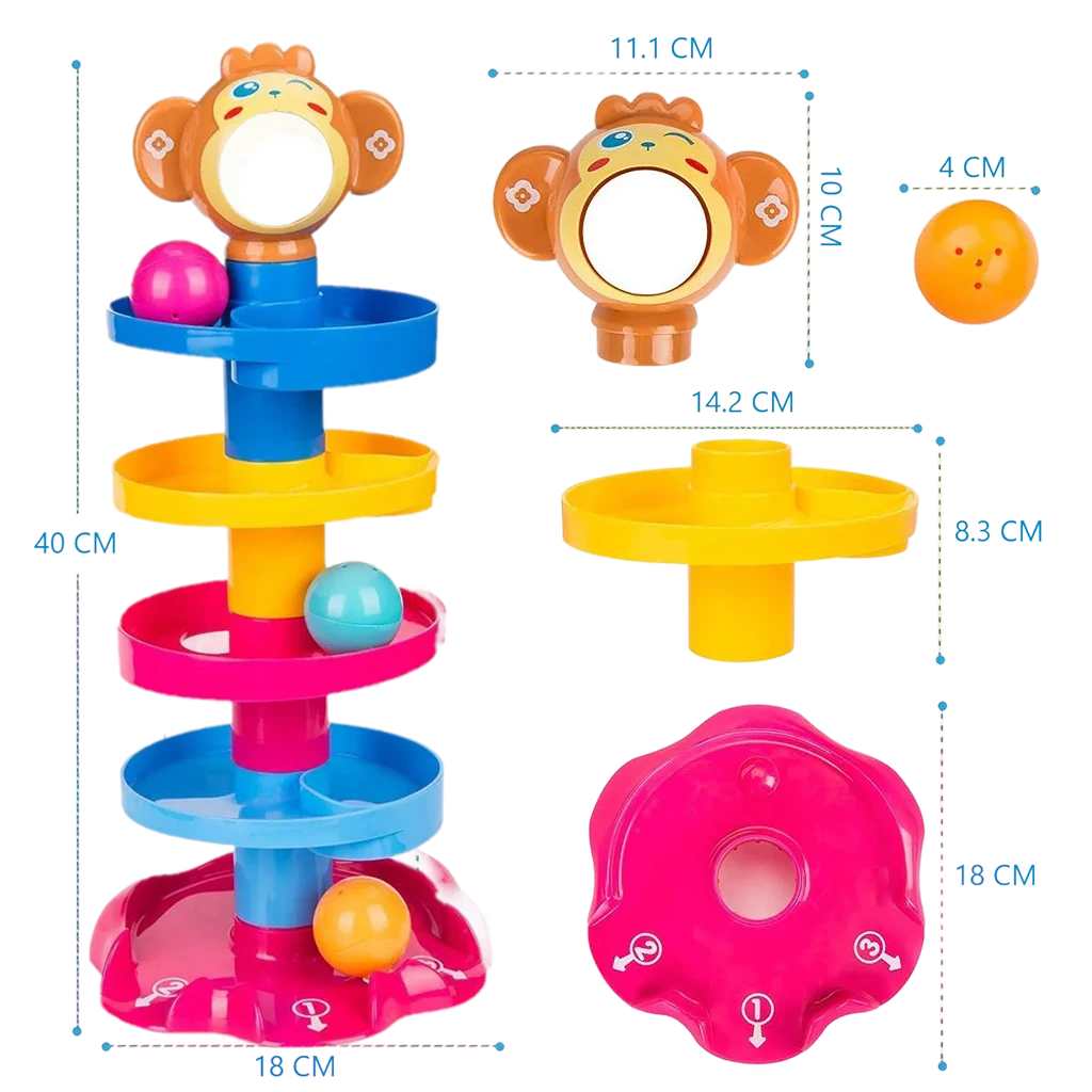 ¡Estimula la imaginación y la destreza en tus hijos con este Tobogán Monito Sensorial! Simplemente coloca la bola en el orificio y observa cómo cae y rueda por cada nivel. Fácil de armar y desarmar, hecho con plástico ABS de alta calidad. Sus colores vibrantes, sonidos interactivos y formas intrincadas mejorarán las habilidades motoras y de resolución de problemas. ¡Ayuda a tu hijo a desarrollar su coordinación ojo-mano con este juguete!