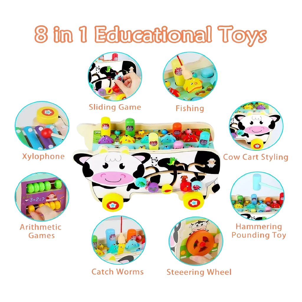 Topo Vaca de madera – Juguete Multifuncional 8 en 1